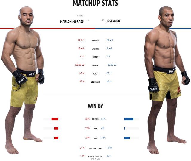 더군다나 말론 모라에스는 물이 오를대로 오른 타격 실력을 보여주고 있고, 조제 알도는 직전 경기에서 레슬러인 볼카노프스키와의 타격전에서도 포인트를 잃으며 판정패 한 상황이죠.