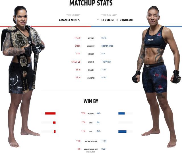 >> 여성부 두체급 챔프 아만다 누네스가 자신의 본 체급인 밴텀급에서 방어전을 치릅니다.
