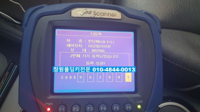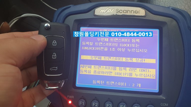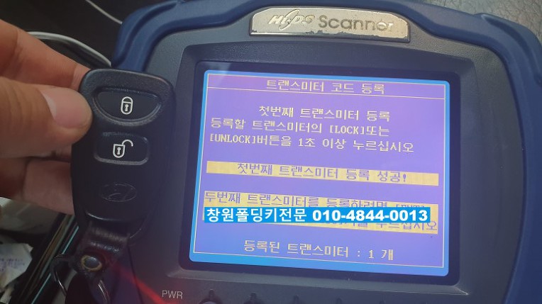 새로운 폴딩키를 싼타페CM 순정주파수인 433MHZ로 입력합니다..
