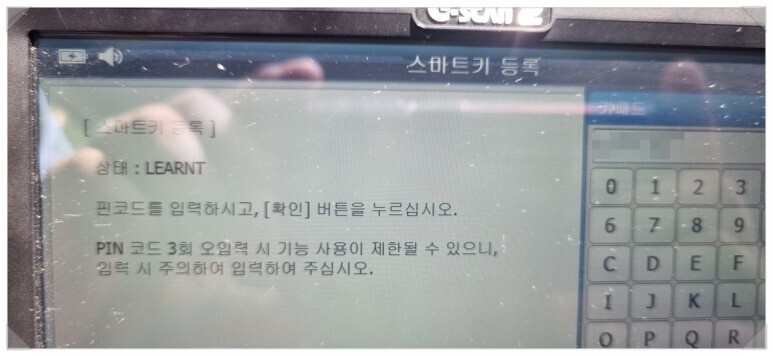 이번 순서는 차량의 비밀번호격인 핀코드를
