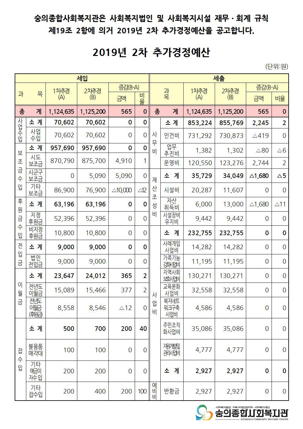2019년 2차 추가경정예산 공고 작성자숭의종합사회복지관|작성시간19.07.25|조회수110 목록 댓글 0 글자크기 작게가 글자크기 크게가 다음검색 현재 게시글 추가 기능 열기 북마크 공유하기 신고 센터로 신고 댓글 댓글 0 댓글쓰기 답글쓰기 댓글 리스트