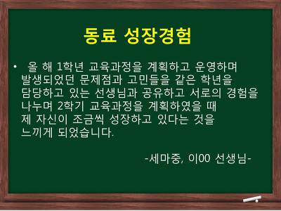 세마중 이 00선생님은 동료교사와 나누는 것이 쉽지는 않았지만
