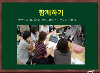 학부모 진로코치 선생님 세 분을 섭외하여, 00중학교 프로젝트 수업을 미술선생님과 함께 하셨습니다.