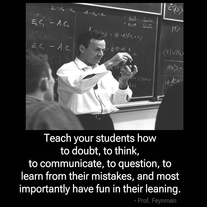 | 의심하고, 생각하고, 소통하고, 질문하고, 실수로부터 배우는 법을 가르치세요. 무엇보다 배움을 즐기도록 가르치세요! -리처드 파인만- |