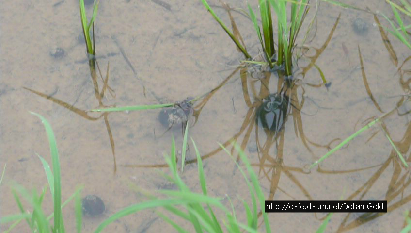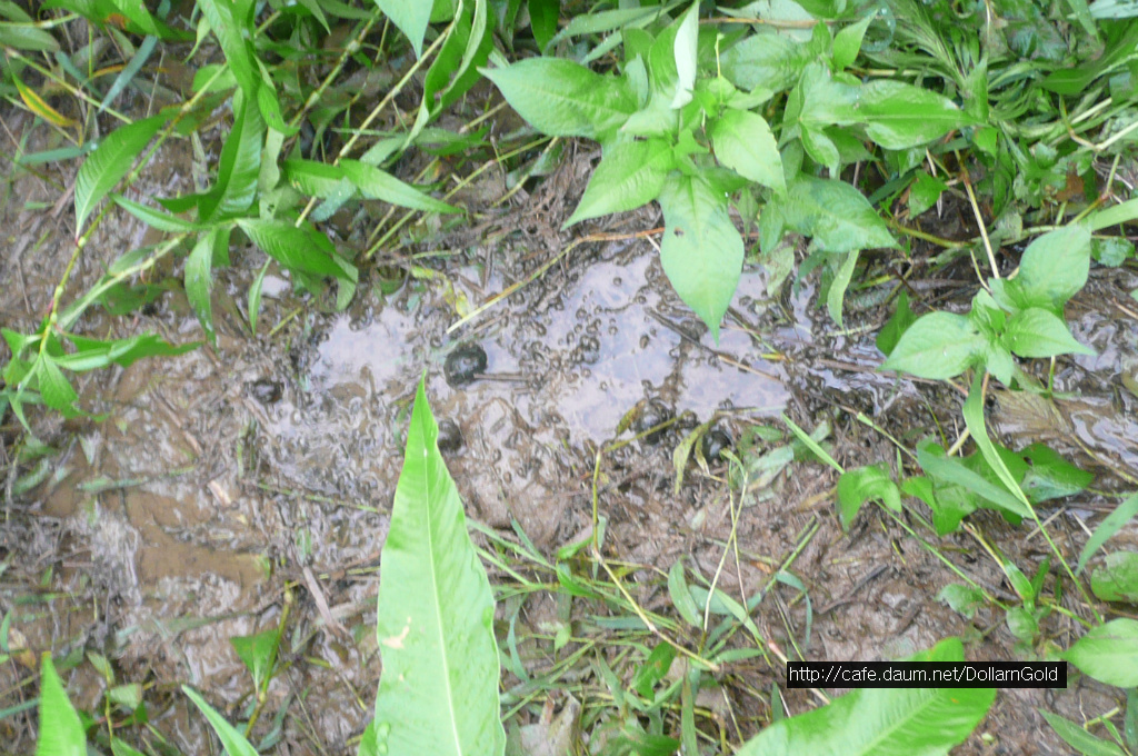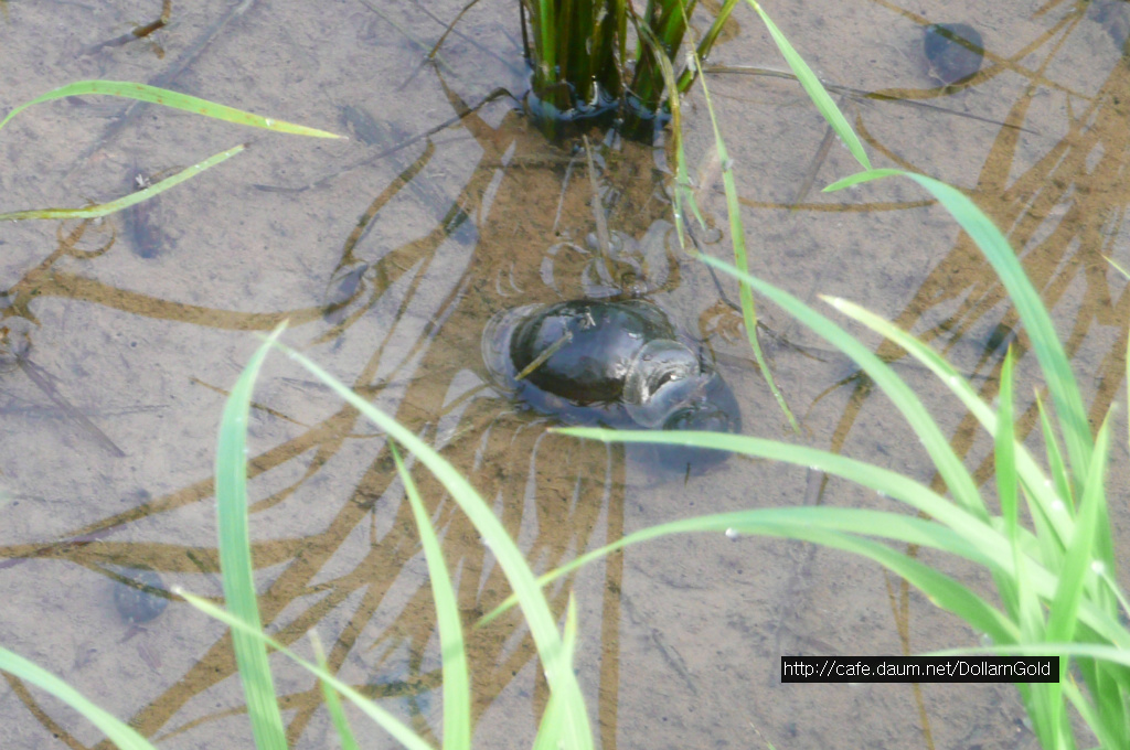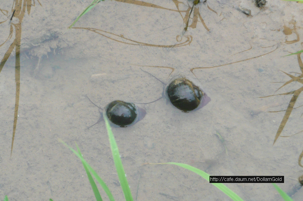 논바닥에 우렁이가 많습니다.