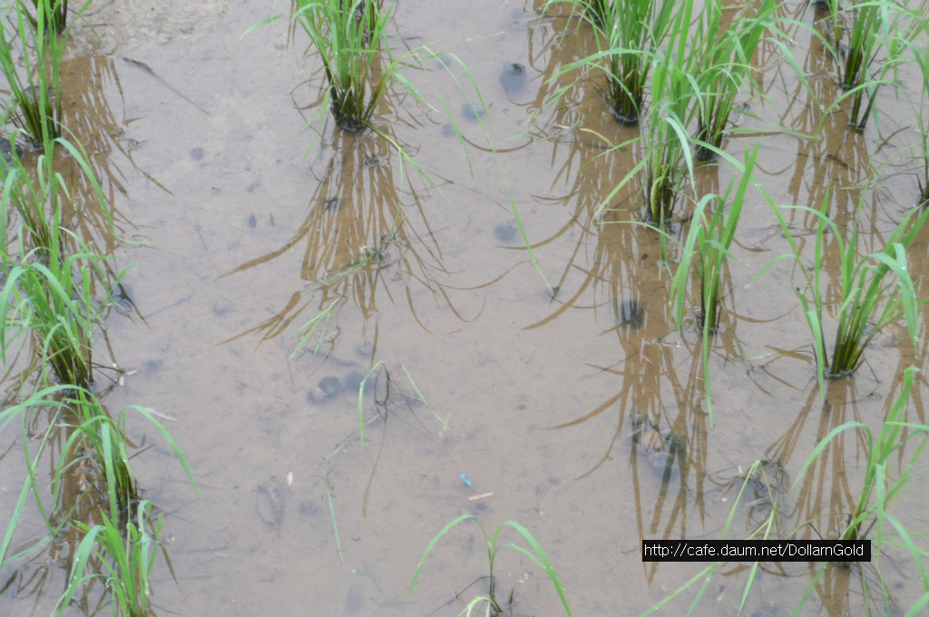 이 논바닥은 깊이 파면 자갈이 나오는 곳이라 벼가 자라기 위해 필요한 양분이 적습니다.