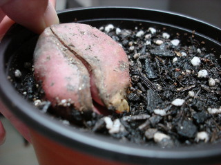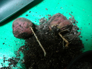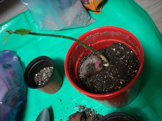 그런데 기쁜일이 생겼네요. 3개의 씨앗중 하나가 발아하여 지금까지 크고 있었는데(제일 큰 씨앗, 나머지도 10cm 비닐팟 거의 반을 차지하죠 ^^) 나머지 2개도 뿌리가 많이 자랐더라고요. 그래서 2개를 따로따로 심어주었습니다. 처음에 씨앗을 받을때 심어준대로 3개를 같이 두었었거든요. 뿌리에서 흙을 턴 것이 아니라, 제가 물을 좀 아껴주다 보니 흙이 완전히 말라서 그냥 떨어진 것 입니다.