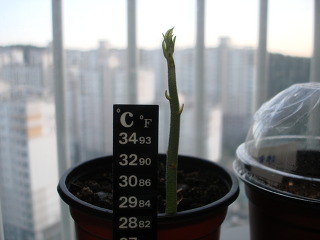 방 창가에 두었구요. 창문을 열어도 씨앗을 심은 분까지는 열지 않았습니다. 다행이 8월은 날씨가 괜찮아서 발아에 도움이 된 것 같습니다. 낮에는 창문을 반정도 열어 환기가 되도록 하고, 저녁에는 완전히 닫거나 온도에 따라 아주 조금 열어주거나 하였습니다. 방문은 거의 열어두었고, 온도가 좀 낮은날은 방문도 닫아주었습니다. 온도는 수족관용 온도계중 종이처럼 생겨서 온도에 맞는 숫자가 보이는 한 1천원정도 되는 온도계로 비닐팟옆에 두고 측정하였습니다. 26도 미만정도 되면, 창문과 방문을 모두 닫거나 하였습니다.