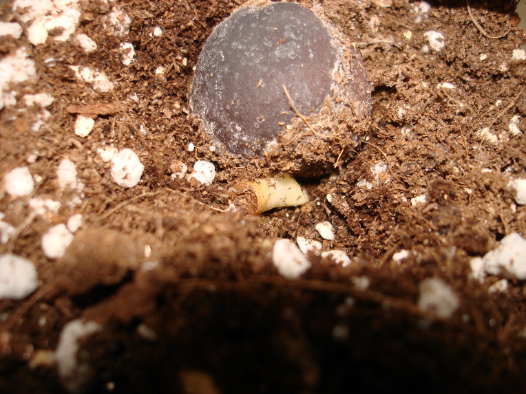 1/30에 파종을 해서 2/24일 줄기 부분이 꽤 나왔습니다. 이 날자 이전에 이렇게 나온 줄기 부분이 나왔다가 다시 들어가 버렸던 것이구요. 이 나온 줄기 끝 부분은 절단면같습니다. 그 가운데서 뿌리가 나오더라고요.