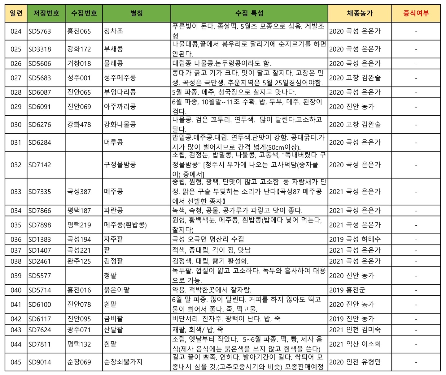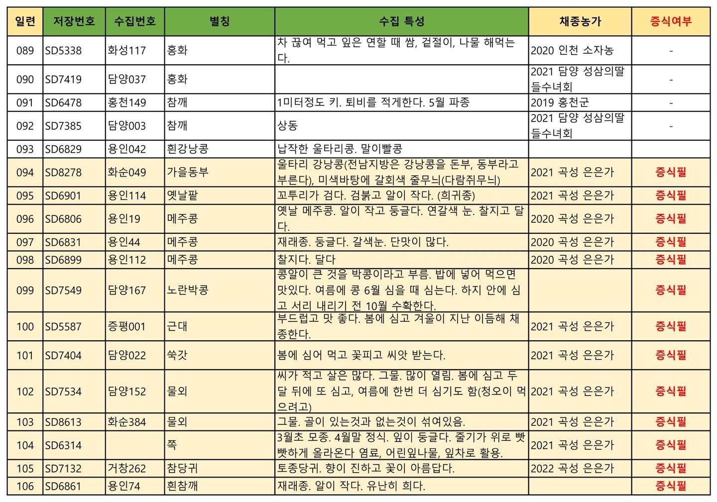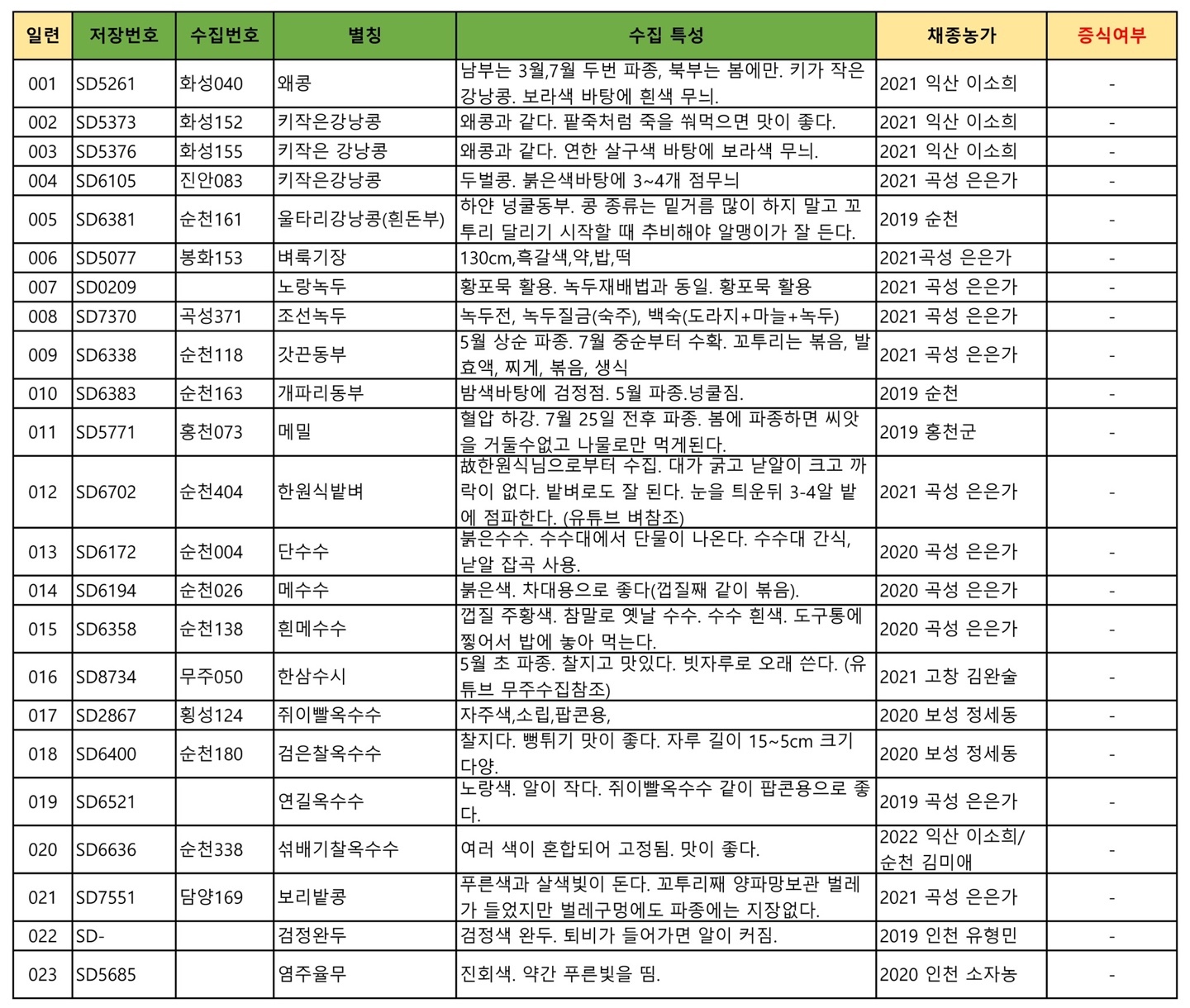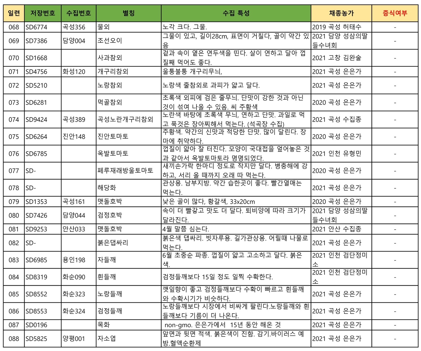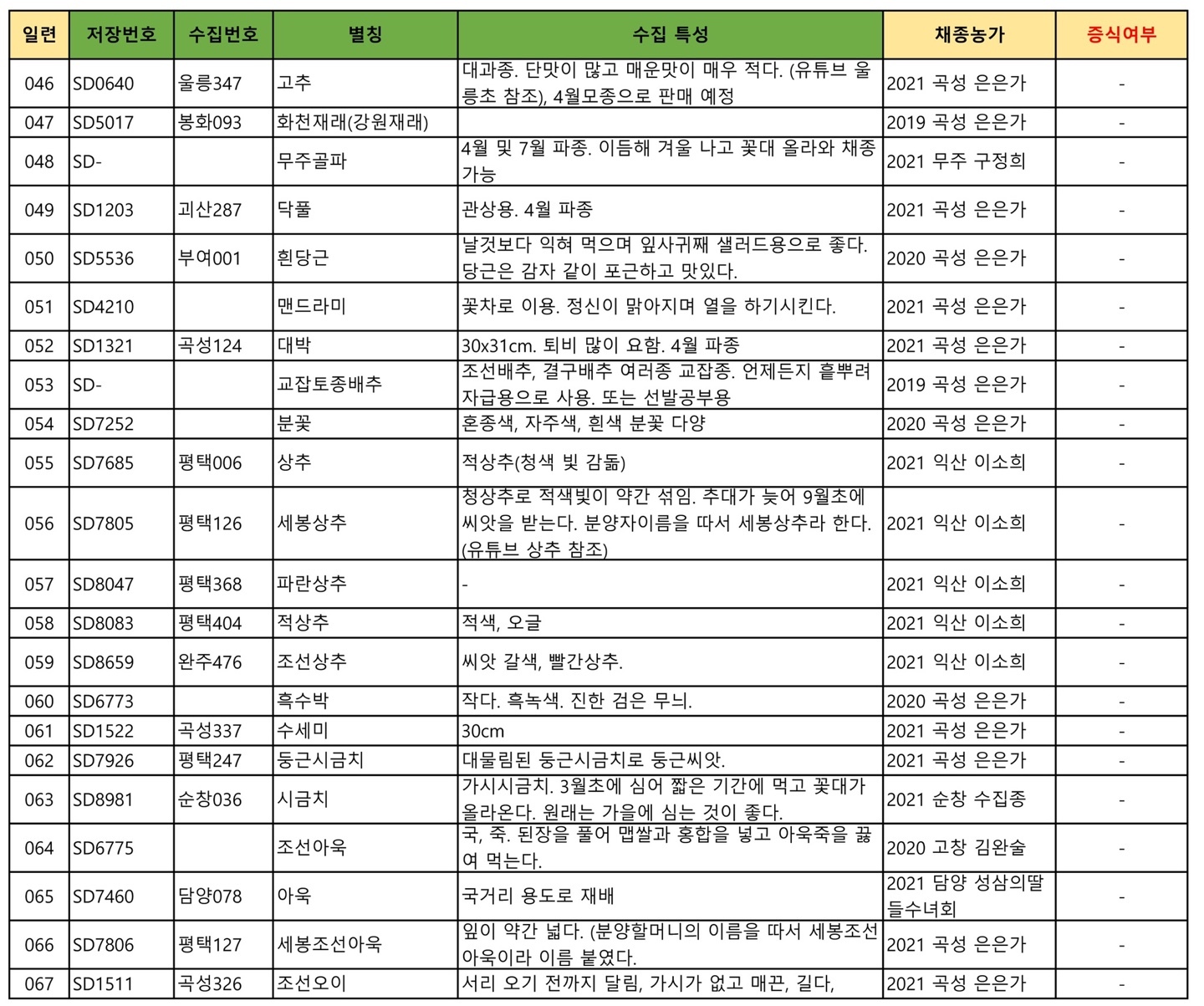 >> 토종씨드림 정회원 봄 씨앗 나눔 목록