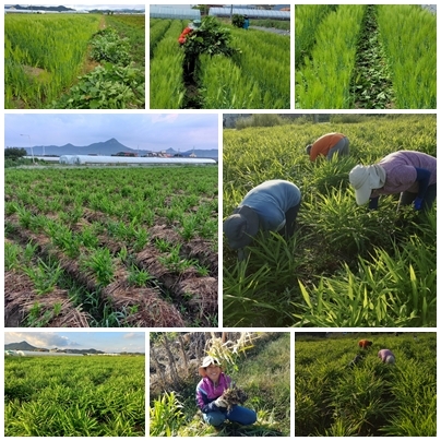 생강에 습도와 온도를 유지시키고, 풀을 억제하는 방법을 써왔어요.