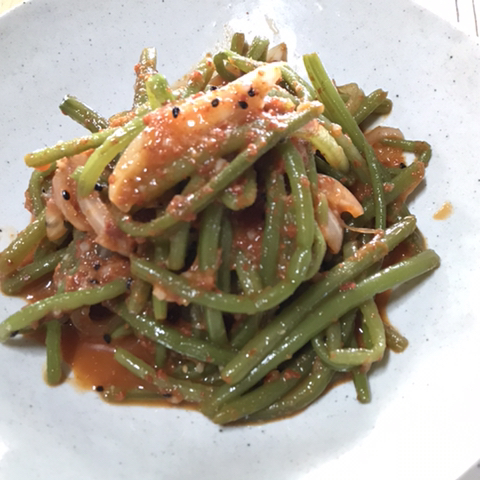 들길님이 담그신 생고구마순 김치도 아식하고 맛이 끝내주는데 올해 저는 데쳐서 담그는 것을 합니다. 좀 더 손쉽고 두고 먹어도 수분이 덜 나와 질겨지지 않아 좋습니다.