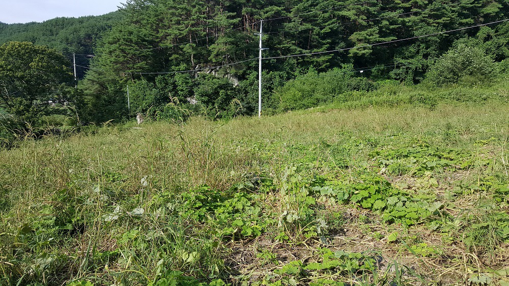 대충 예취기로 풀과 호박줄기를 베고, 그 위에 그냥 메밀 직파.