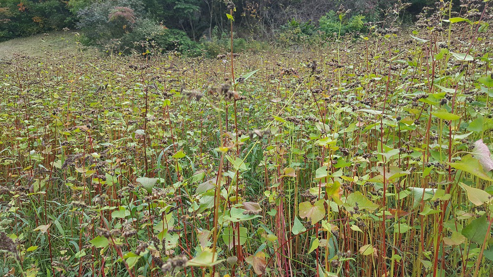 밤호박을 심어서 급식에 보내고, 그 밭에 메밀을 심었더랬습니다.