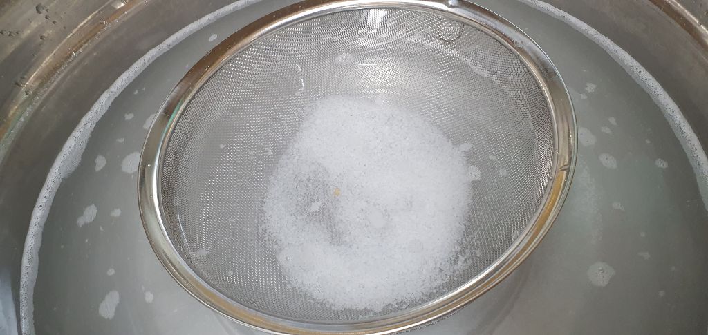 천일염을 물에 좀 짠듯 잘 풀어 넣습니다.