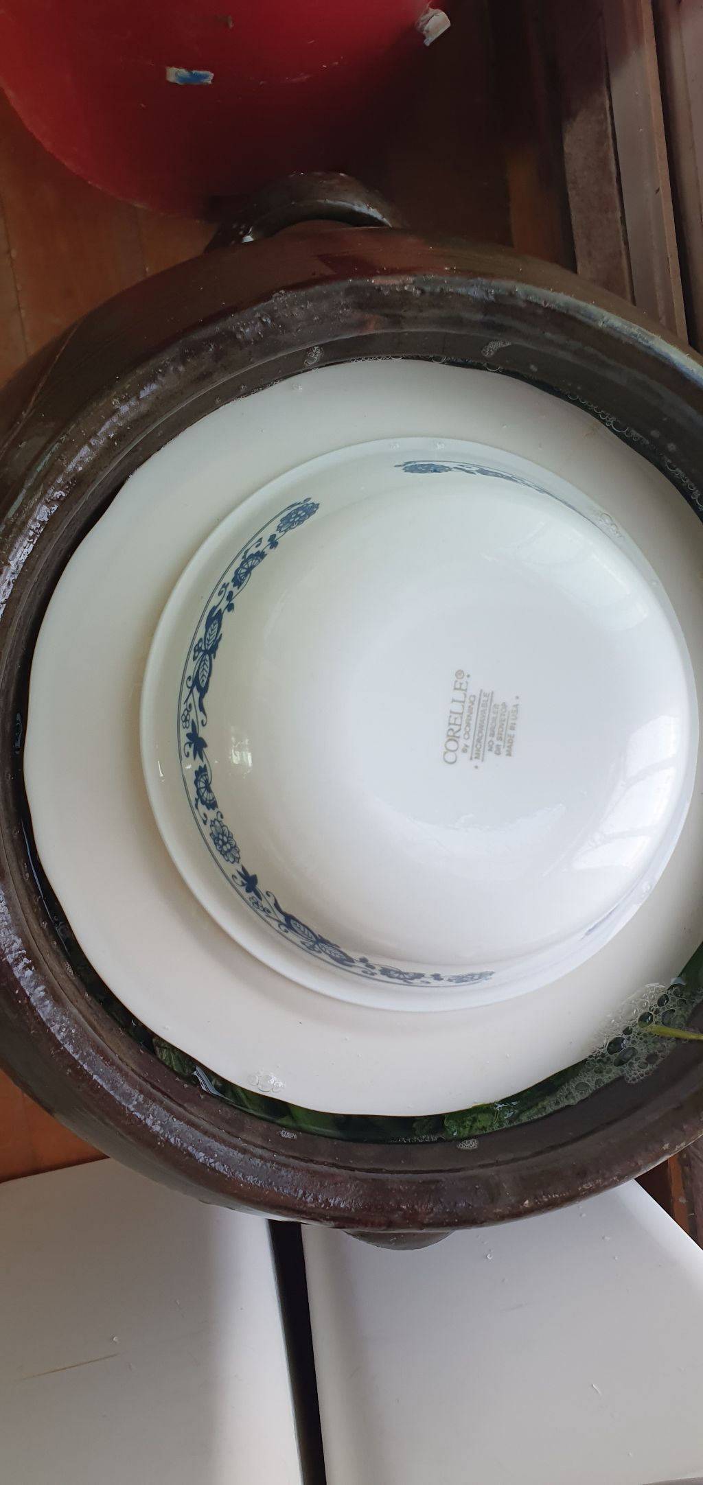 7. 소금물을 항아리에 붓고, 접시로 눌러주었습니다.