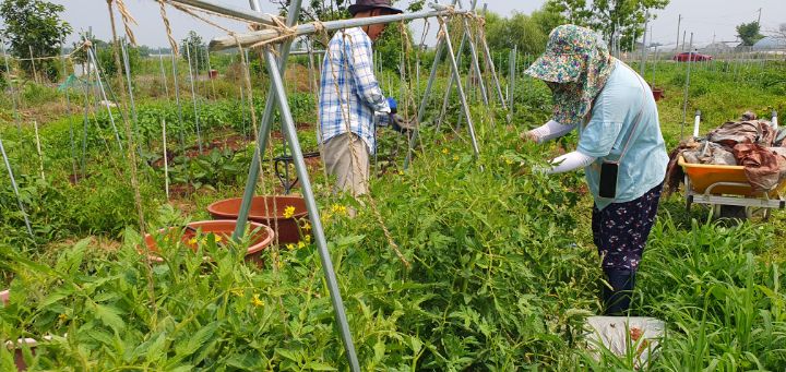 토마토와 가지,고추 곁순제거와 줄로 묶어주기,