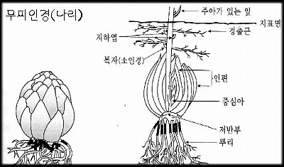 지하경이라고도 하며, 지하에 수평으로 있는 줄기가 비대하여 양분의 저장기관을 이룬 것으로 괴경보다는 비대정도가 적다.