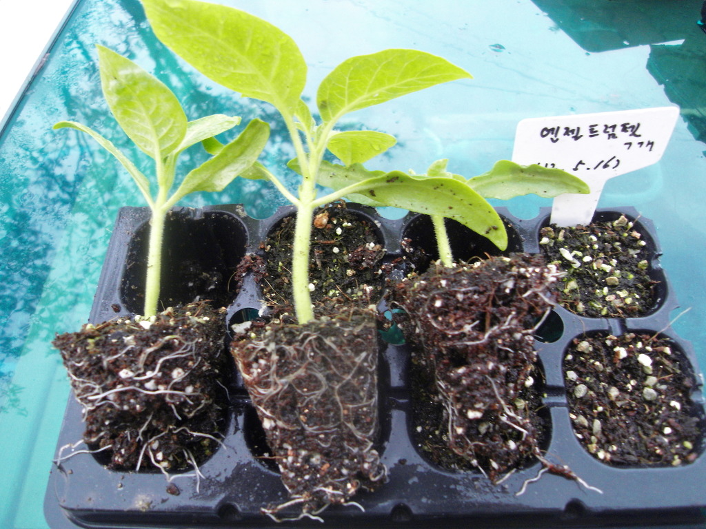 6월 20일.. 트레이 밑으로 뿌리가 나오기 시작하여 오늘 포트로 이식...