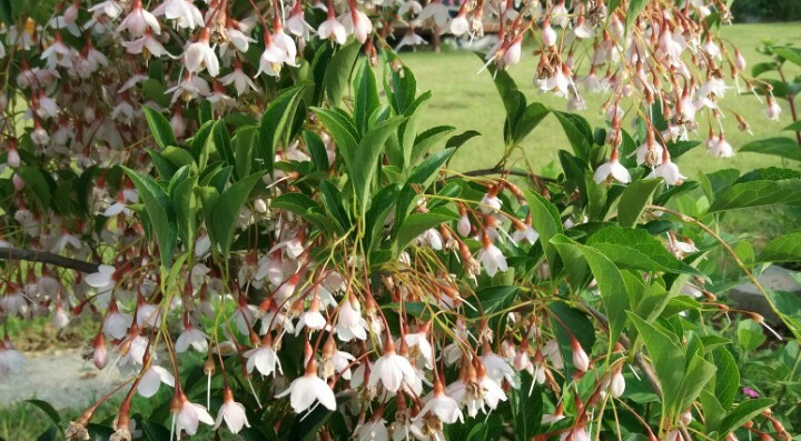 이에 질세라 분홍 수양때죽이 조롱조롱 열리네요
