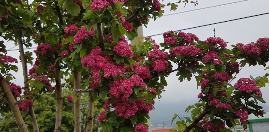 겹홍화산사~퇴색되어가는 꽃아 아쉽지만~~곧 이쁜구슬들로 찿아올거니까요^^