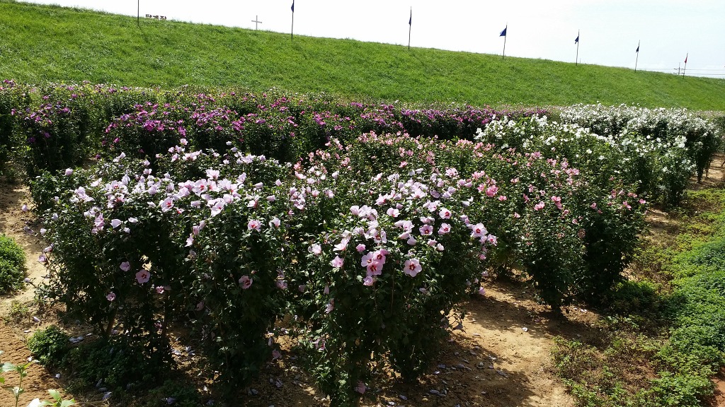 해미 읍성을 거닐다 보니 야생화도 보이고 무궁화밭도 있고요. 귀한 목화꽃도 정말 오랜만에 봤는데 솜이 만들어져 있었는데 씨앗도 솜안에 있던데 정말 신기했어요. 교황께서 방문하신 이후라서 방문댁들이 많아졌다고 하네요. 오랫동안 가고 싶었던곳이라서 아이들마냥 신나게 산책하면서 즐겼답니다.