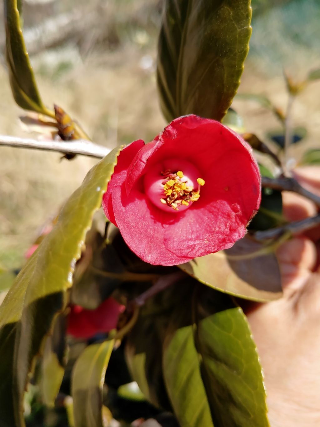 토종동백인데 비실비실 15년이 넘었는데 올해는 마음 고쳐먹었나 꽃이 제대로 피네요