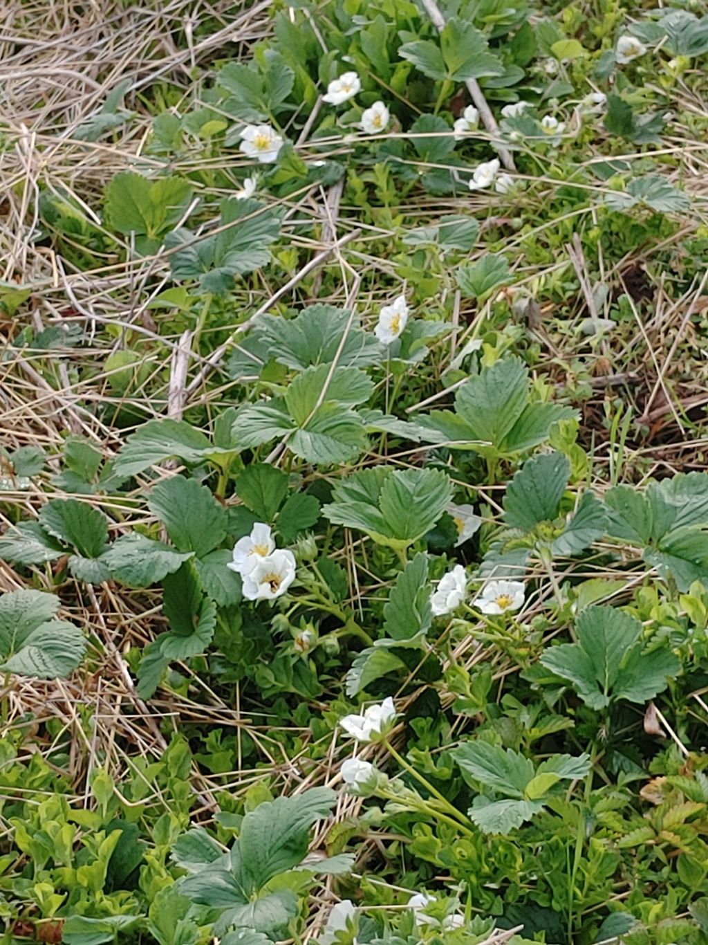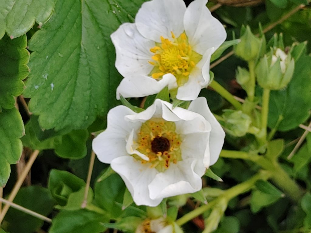 흰꽃은 딸기꽃이고 노란것은 뱀딸기꽃이예요.