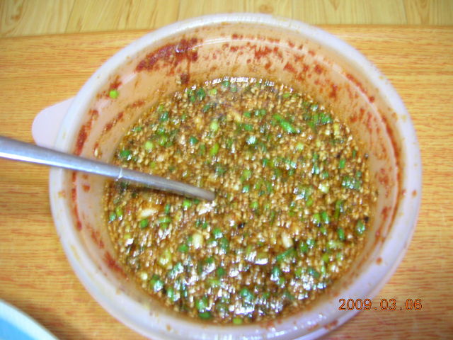 요즘 맛있는 소스 맞지만 저는 우리집에서 담근 집간장에 고추가루 잔파 참기름 마늘 깨소름을 넣어