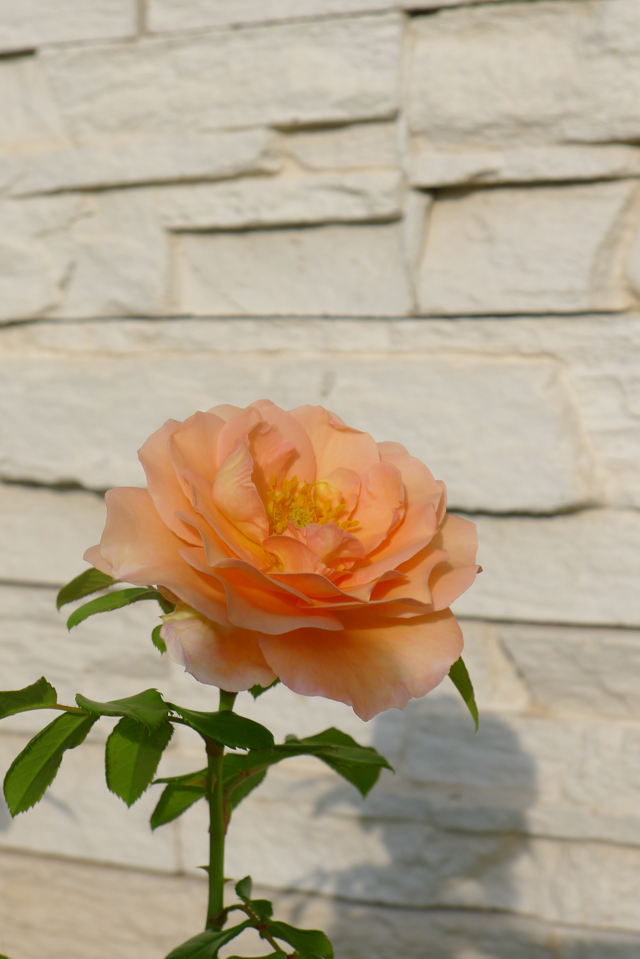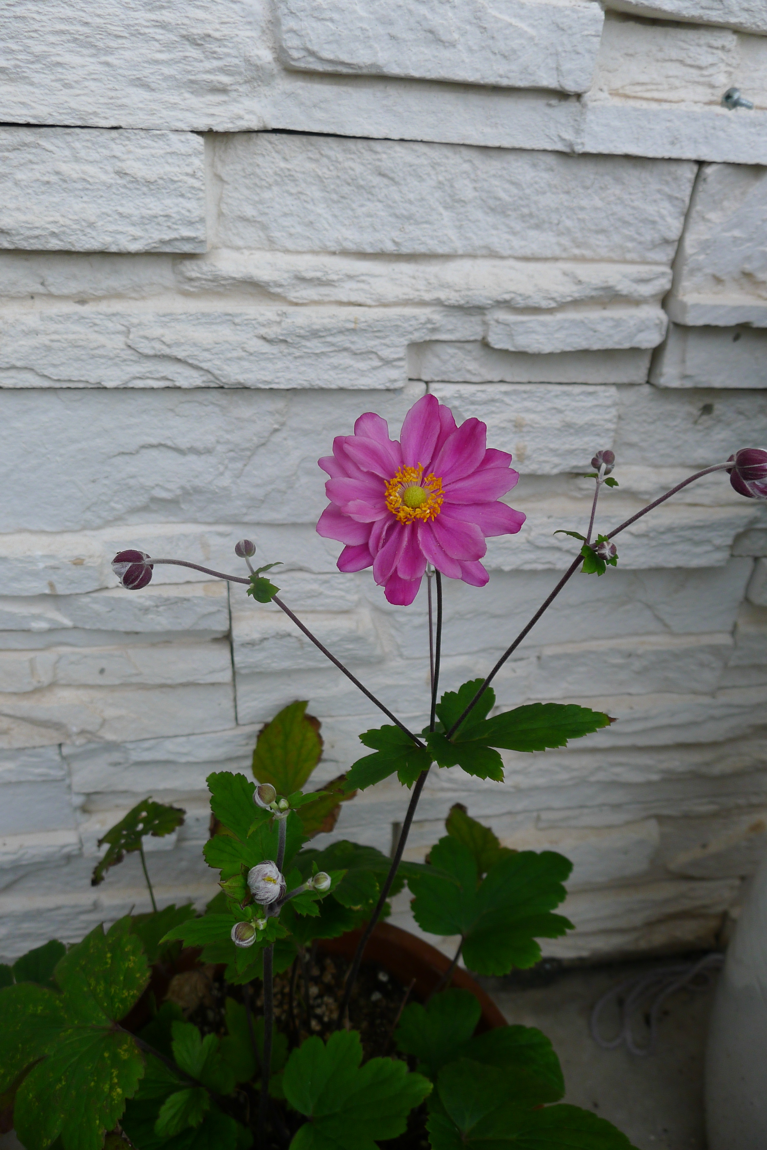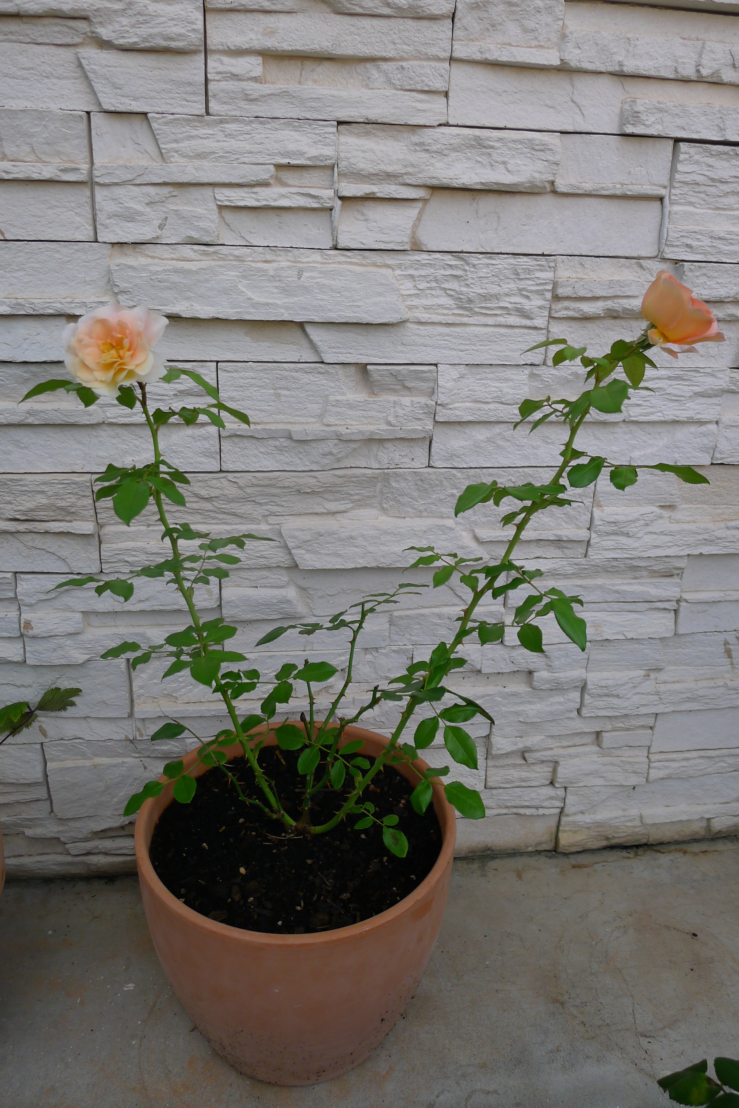 같은 화분에서 봉오리 하나는 노랑, 하나는 주황.