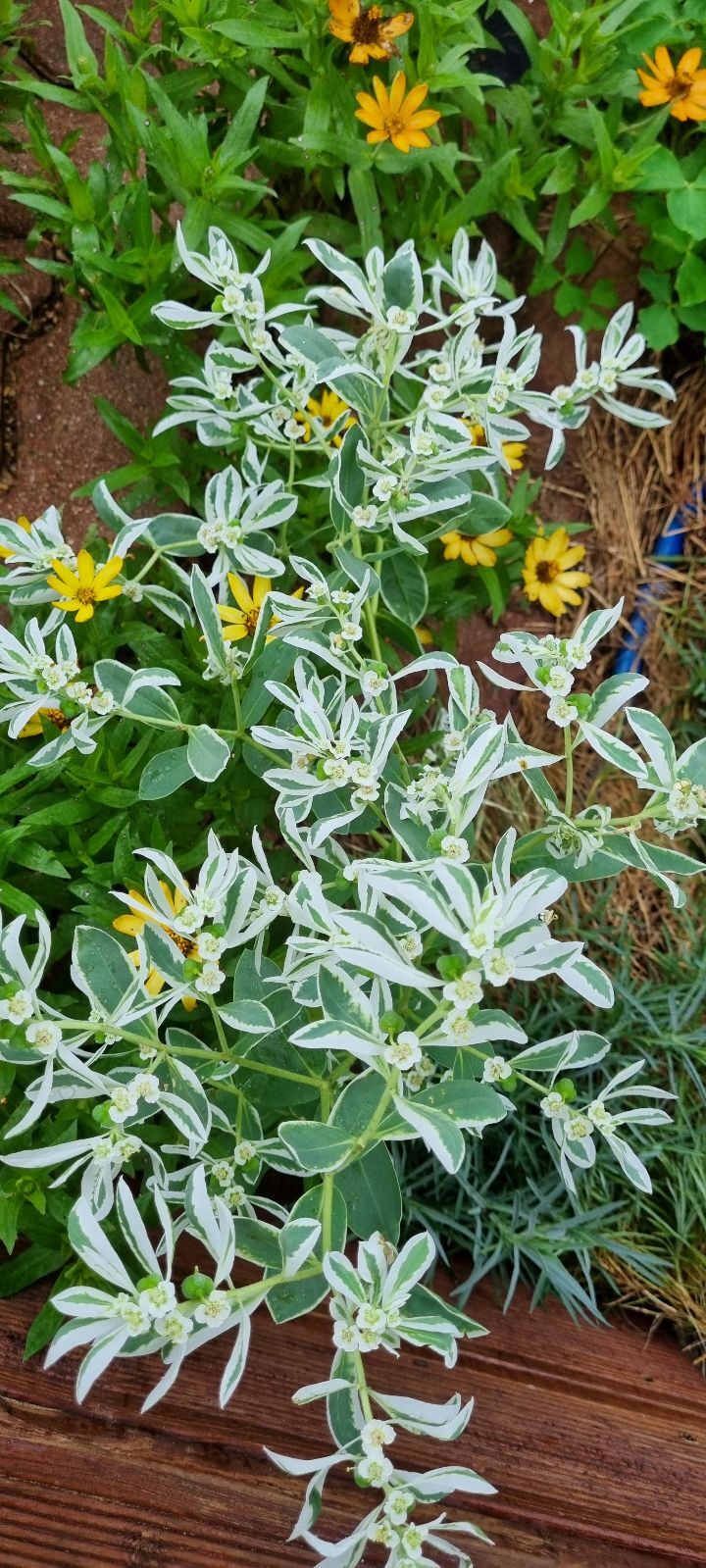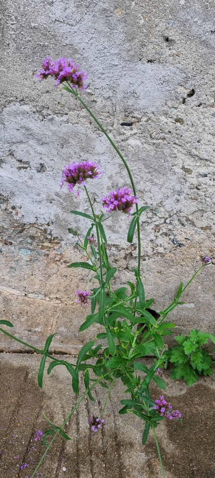 ♧예쁘고 오래가지만, 자연발아가 심해 울타리 밖으로 쫒겨난 숙근버베나 씨앗이 시멘트 틈에서도