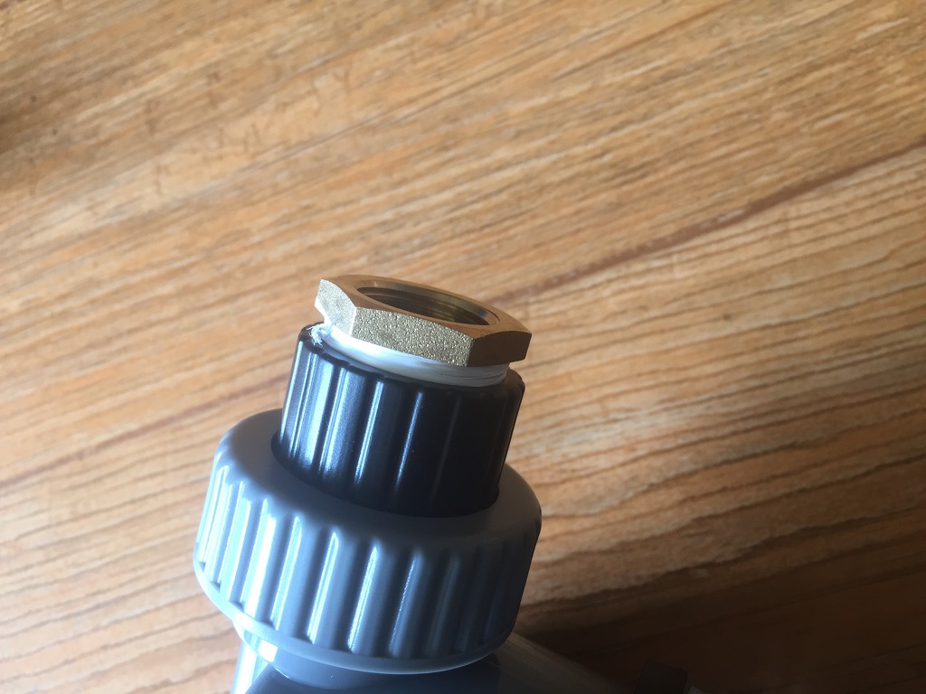 워터 타이머 상단에 신주 부싱을 실링 처리해서 조여 넣습니다.