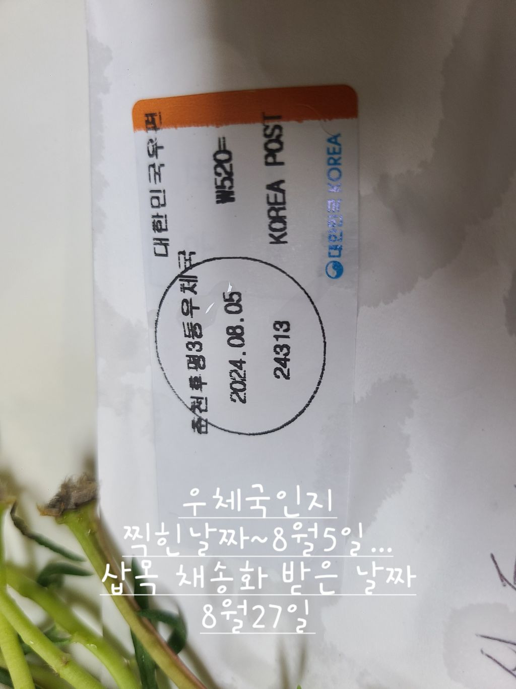 작성자신비비추(대구) 작성시간 24.11.05 와아~~~8.5~8.27..3주간 편지봉투에 갇혀 있었지만