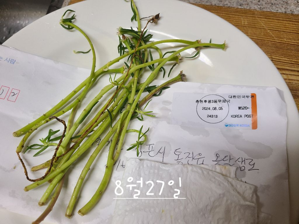 우편물을 뜯으니 말라버린 작은이파리들이 우수수 쏟아졌죠.