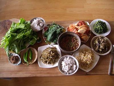 | ▲ 고기반찬은 하나도 없고, 순 '저 푸른 초원 위에' 밥상이다 |