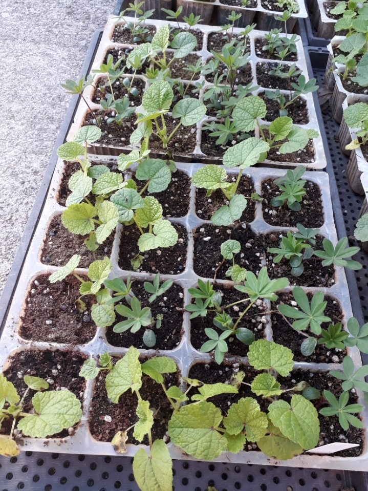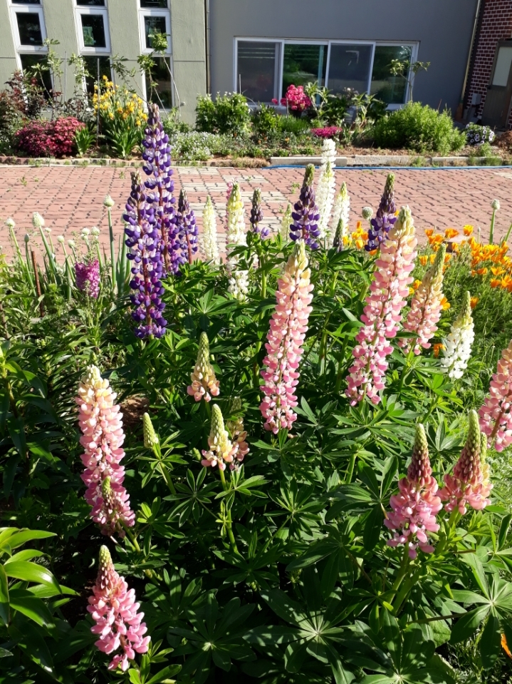 빨강겹접시꽃 파종했는데, 나지않은곳에 루피너스 심어져 있습니다.
