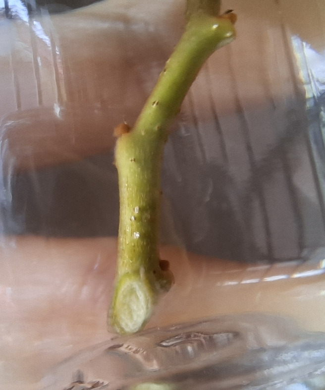 살짝 단단하고 묵은 가지에서