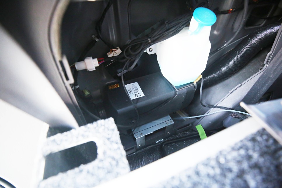 위 이미지는 주행충전기 장착을 위해 1열 운전석 시트를 탈거한 후 촬영된 이미지이며