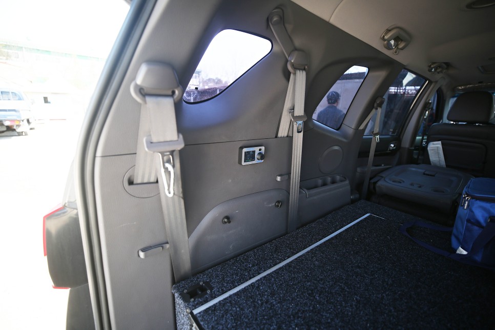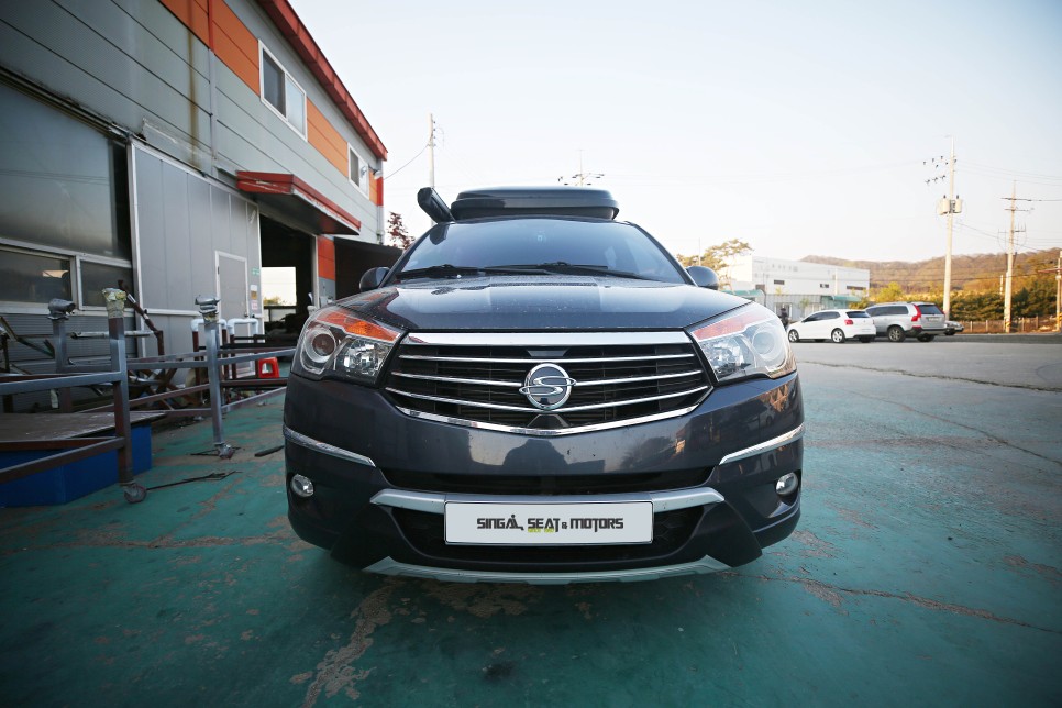 코란도투리스모에 장착된 주행충전기 위에 운전석 시트를 올린 모습 입니다