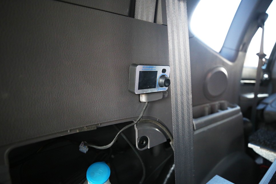 제대로 고정되지 않아 안전벨트 고리에 처량하게 걸려있는 무시동히터 컨트롤러도