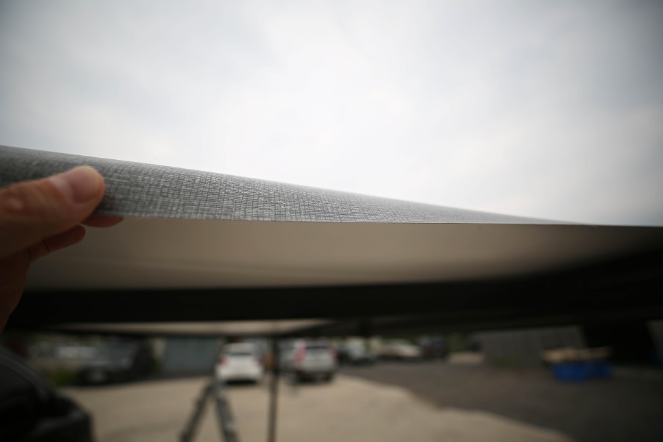 예전에 나오던 저가 자동차어닝과 비교해 두껍고 튼튼한 원단과 차광코팅으로 인해