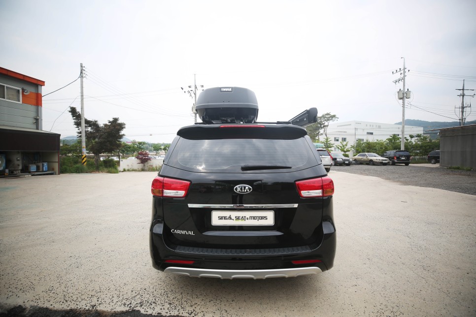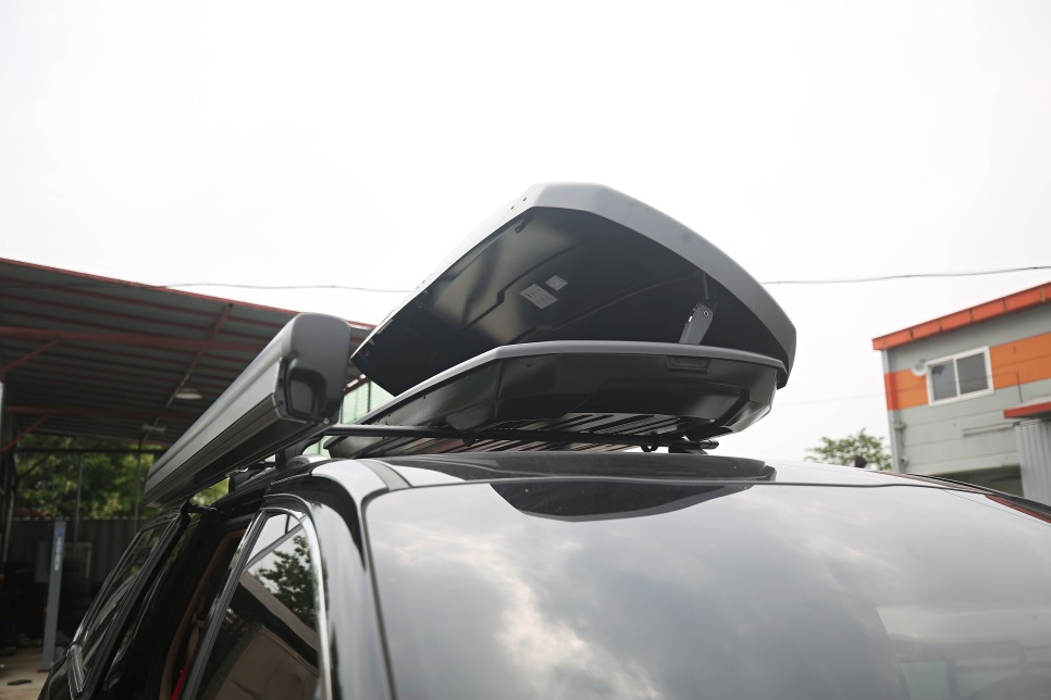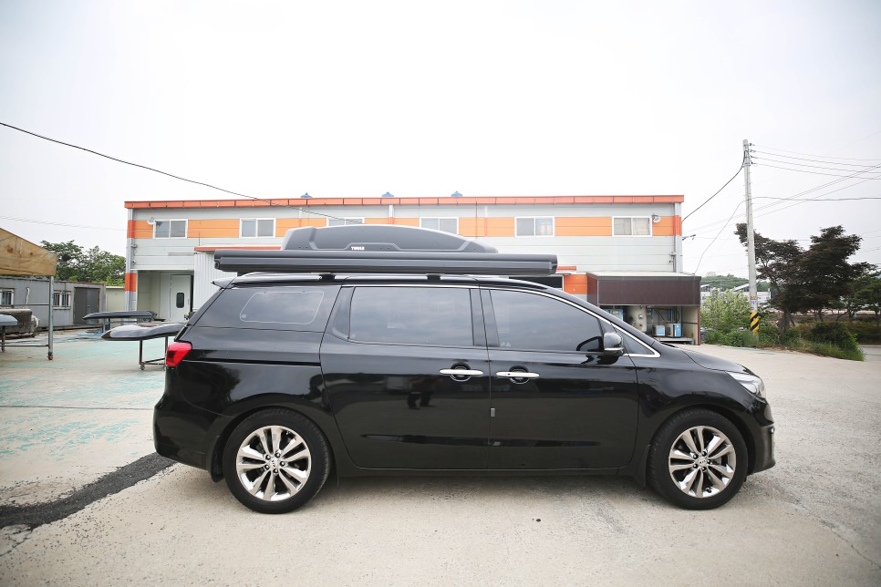 툴레 루프박스를 올뉴카니발의 좌측 (운전석 쪽)에 위치시켜