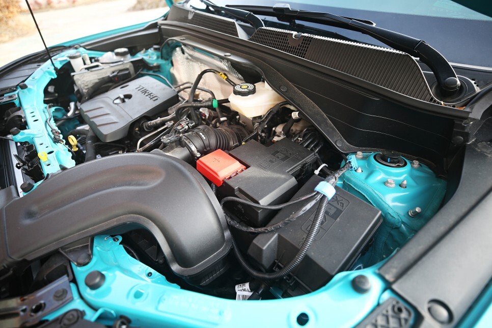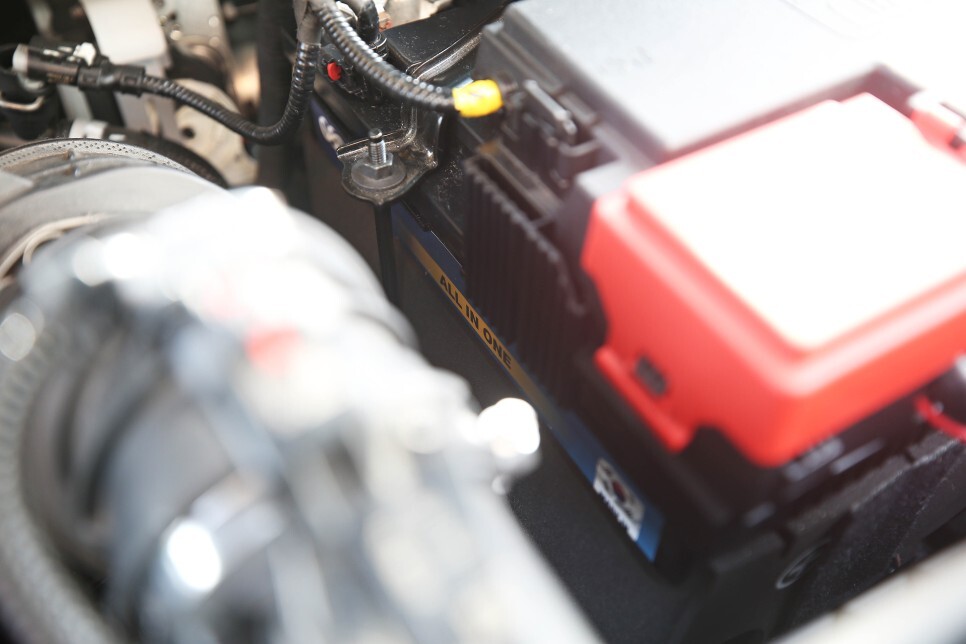 위 트레일블레이저 엔진룸에 순정 납산 배터리를 탈거하고