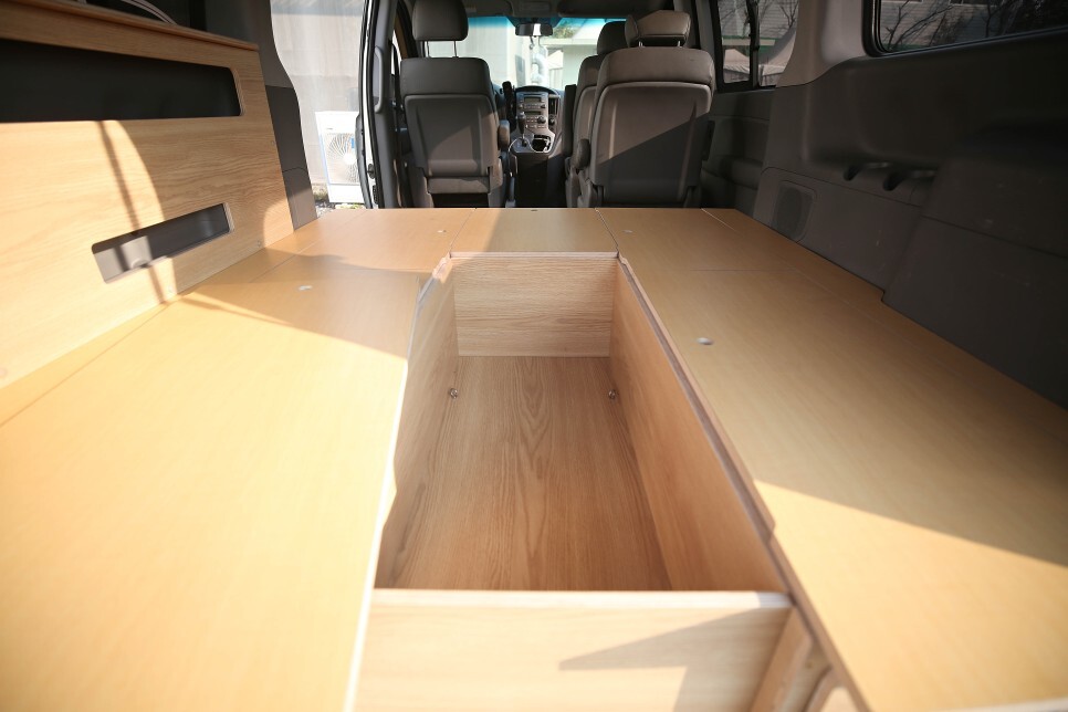 구석구석 세심한 배려가 돋보이는 스타렉스 평탄화 차박캠핑카 개조 고급형 제품 입니다