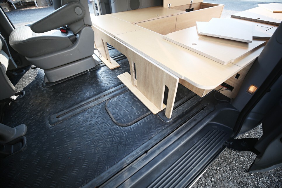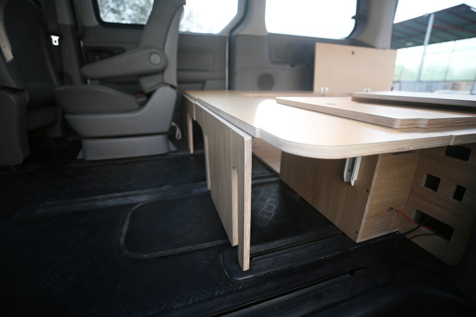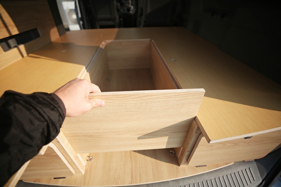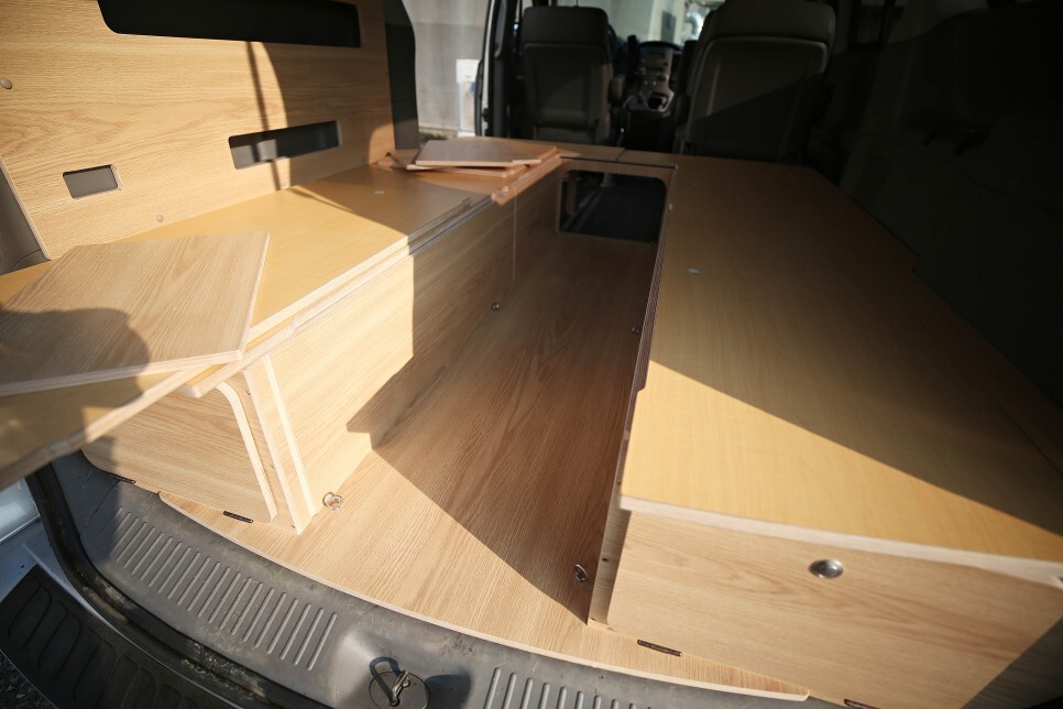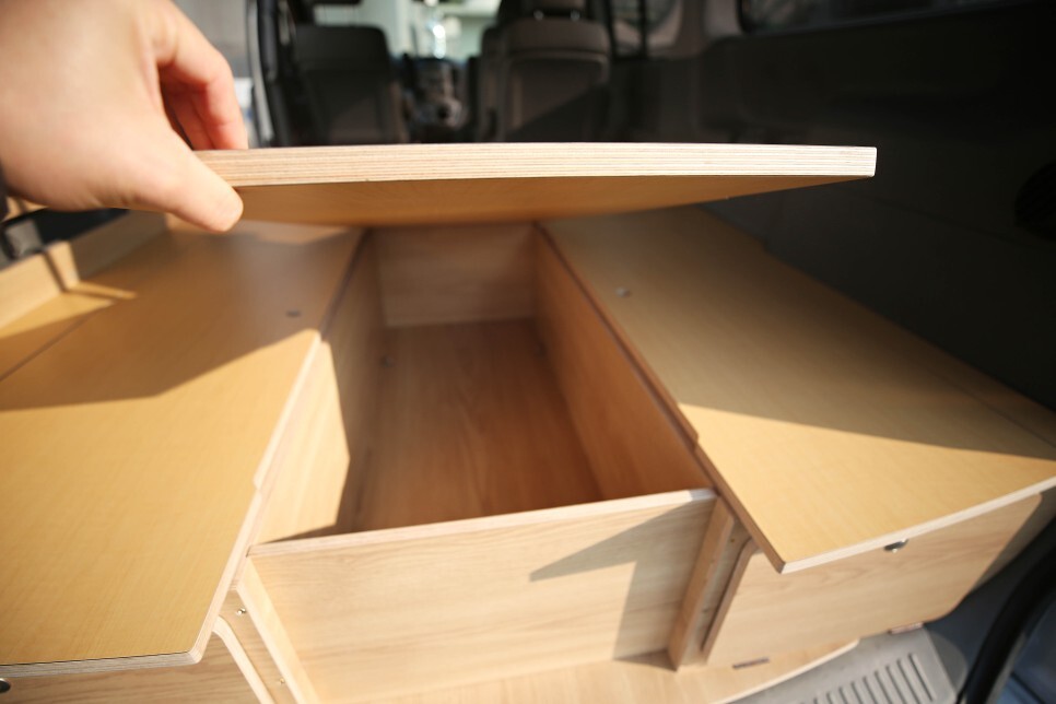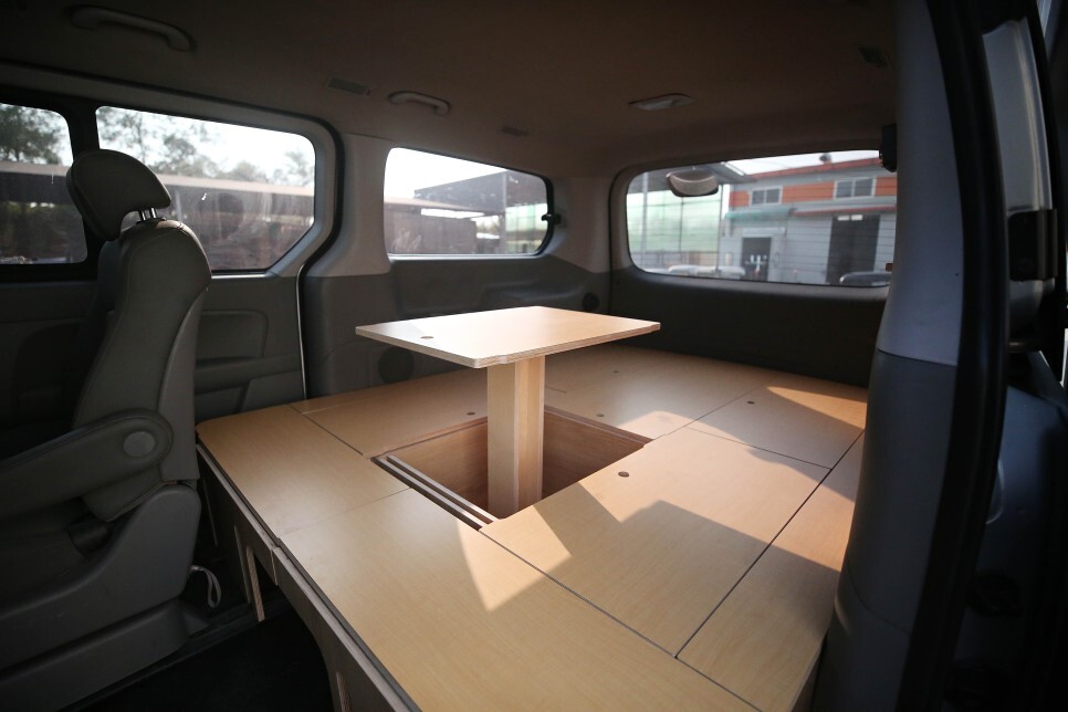 본 스타렉스 평탄화 차박캠핑카 개조 작업의 히든 테이블 입니다