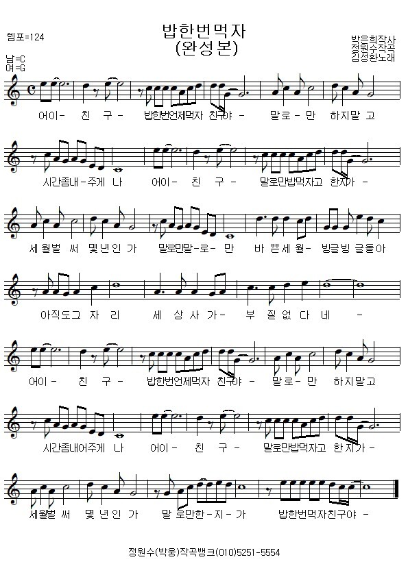 [스크랩] 김성환 밥한번먹자 악보 작성자작곡가정원수|작성시간23.01.08|조회수119 목록 댓글 0 글자크기 작게가 글자크기 크게가 김성환 의 "밥한번먹자"악보 입니다 다음검색 스크랩 원문 : 정원수작곡뱅크 현재 게시글 추가 기능 열기 북마크 공유하기 신고 센터로 신고 댓글 댓글 0 댓글쓰기 답글쓰기 댓글 리스트