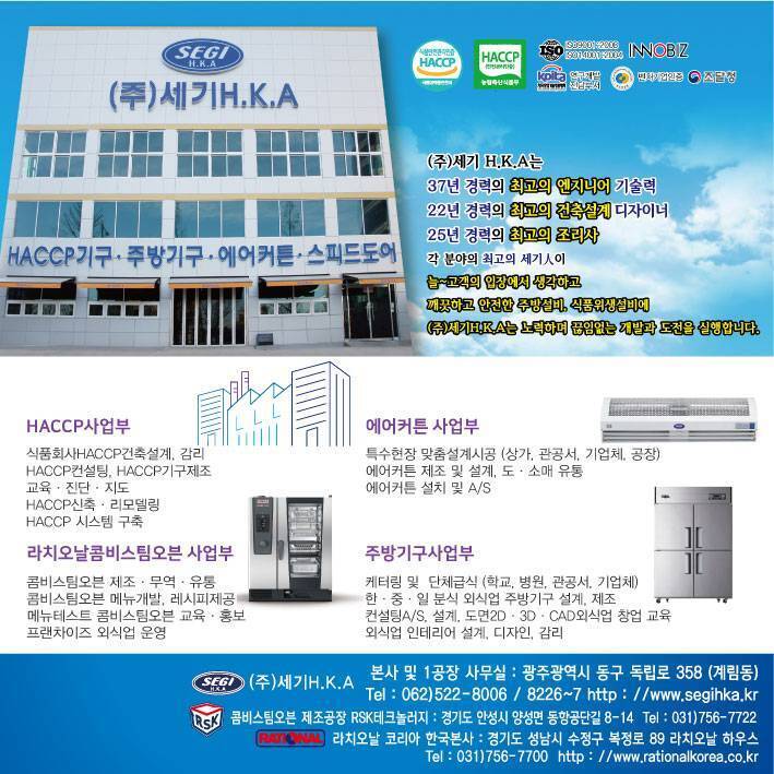 저희 (주)세기 H.K.A는 주방기구 설비 뿐만 아니라 HACCP 기구 HACCP컨설팅 HACCP 감리