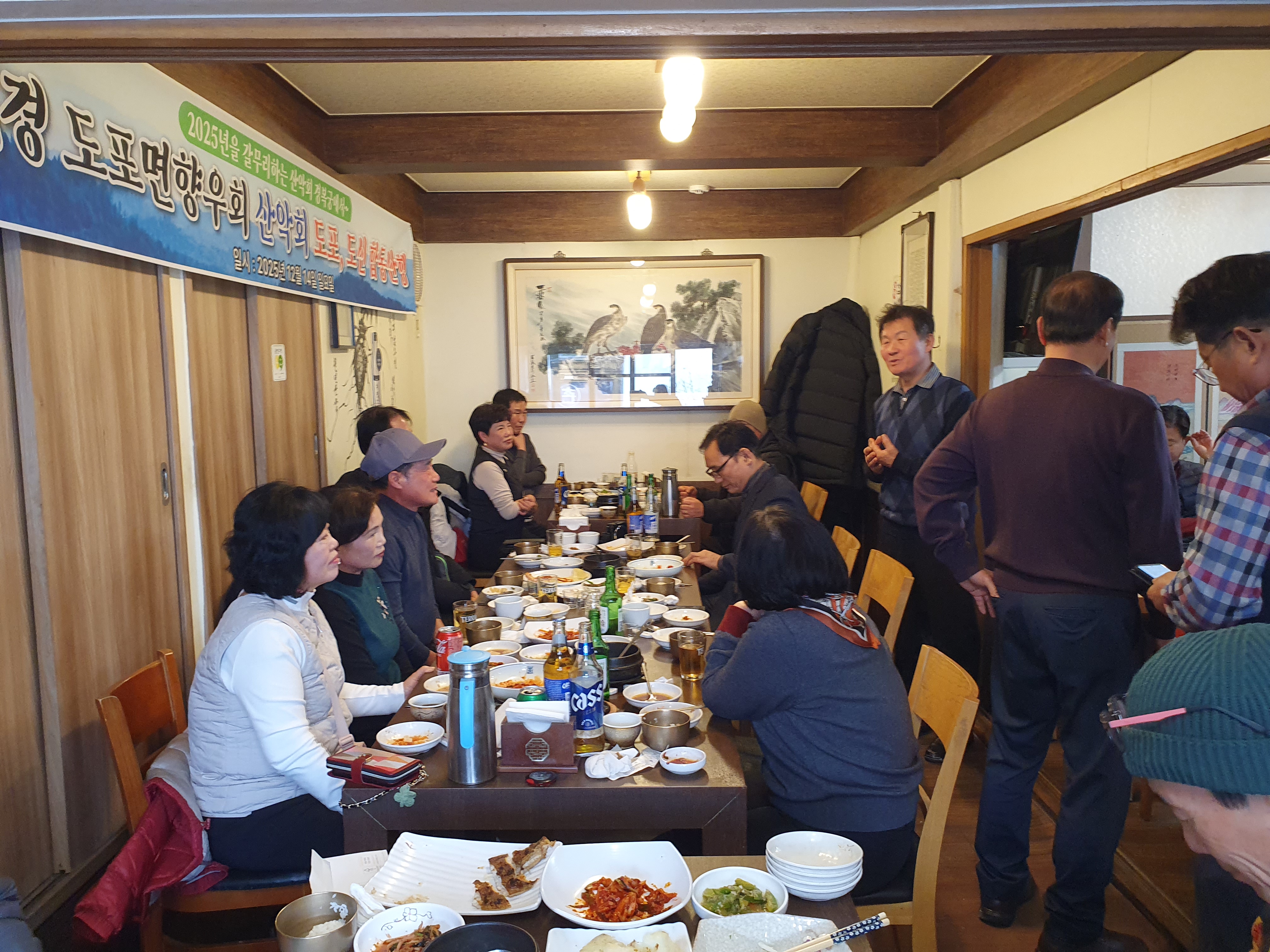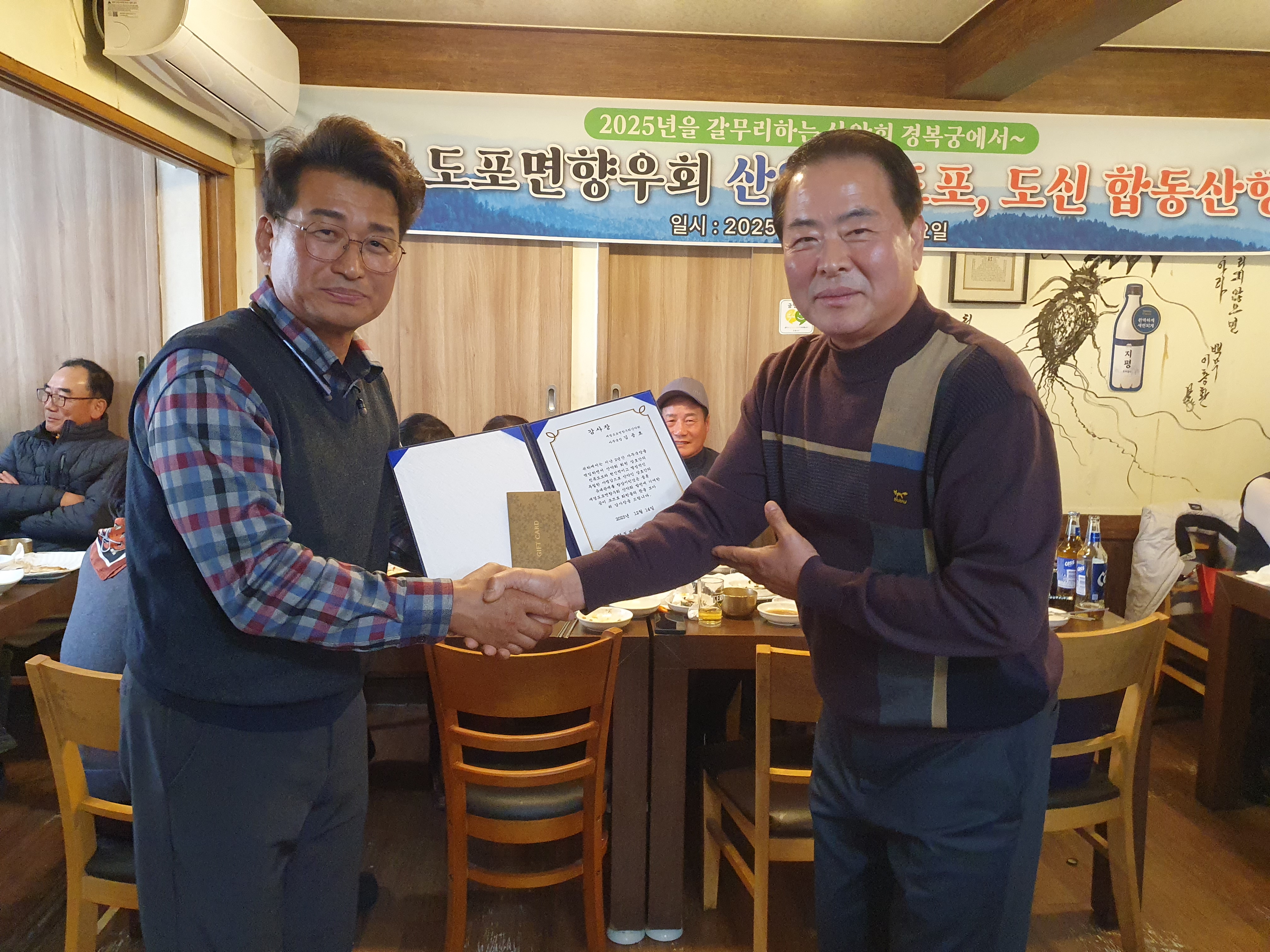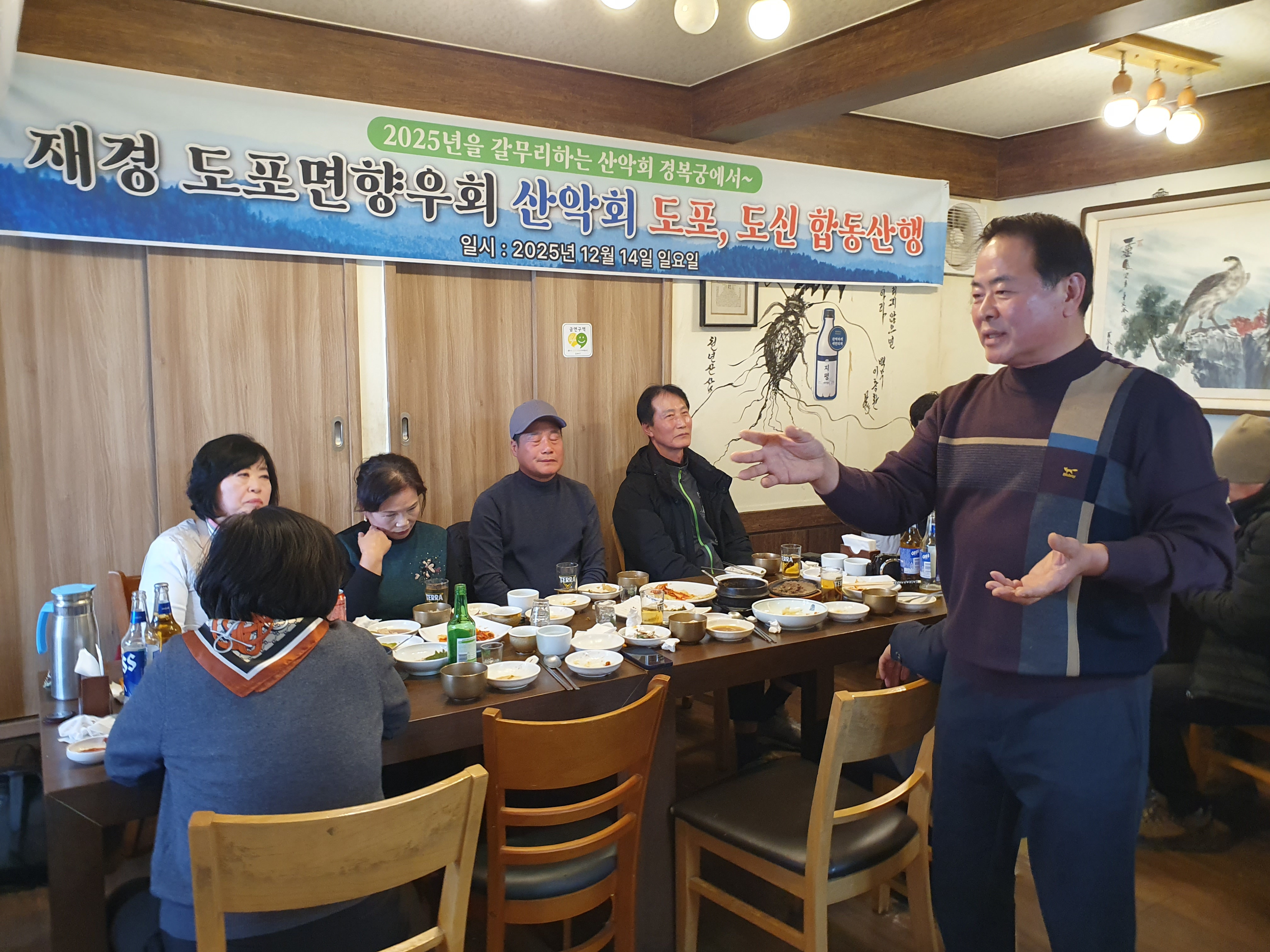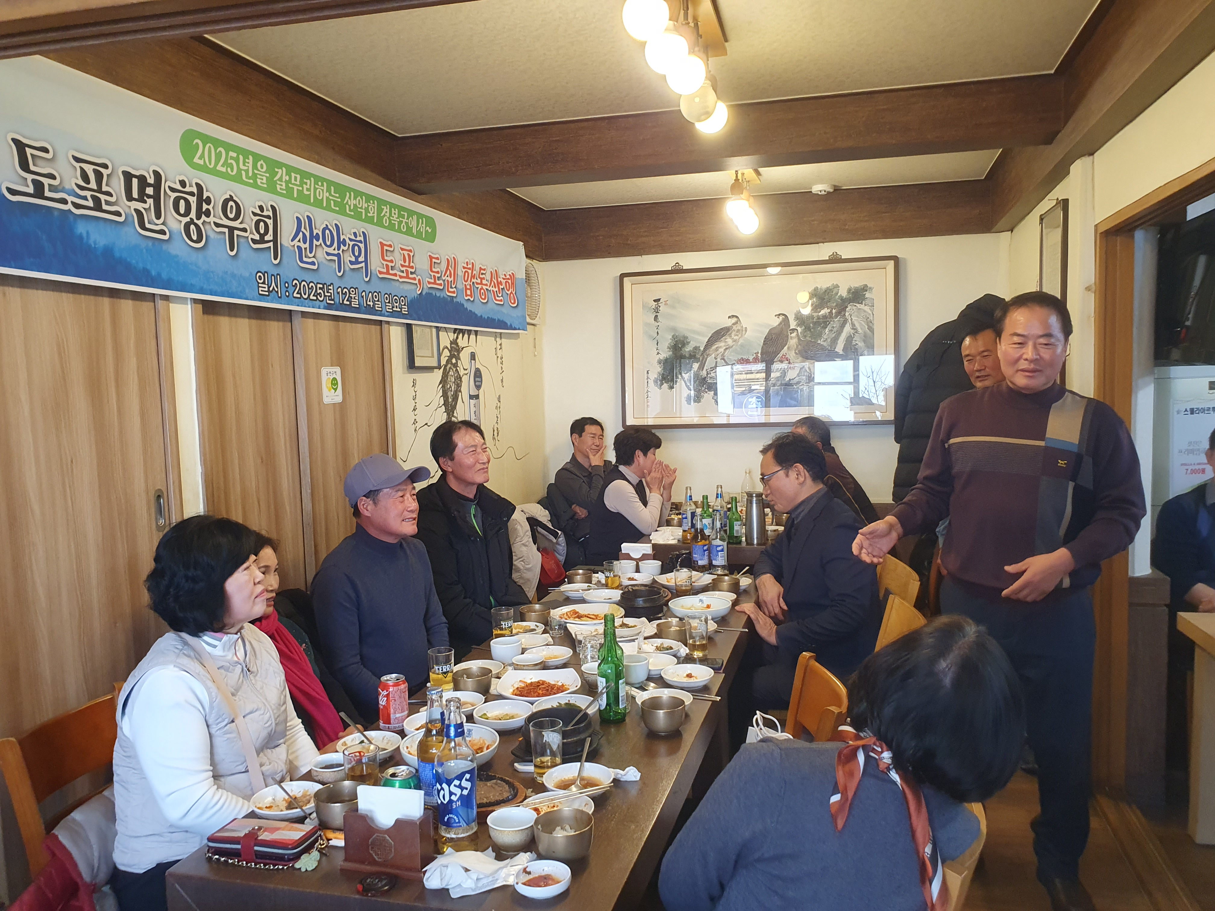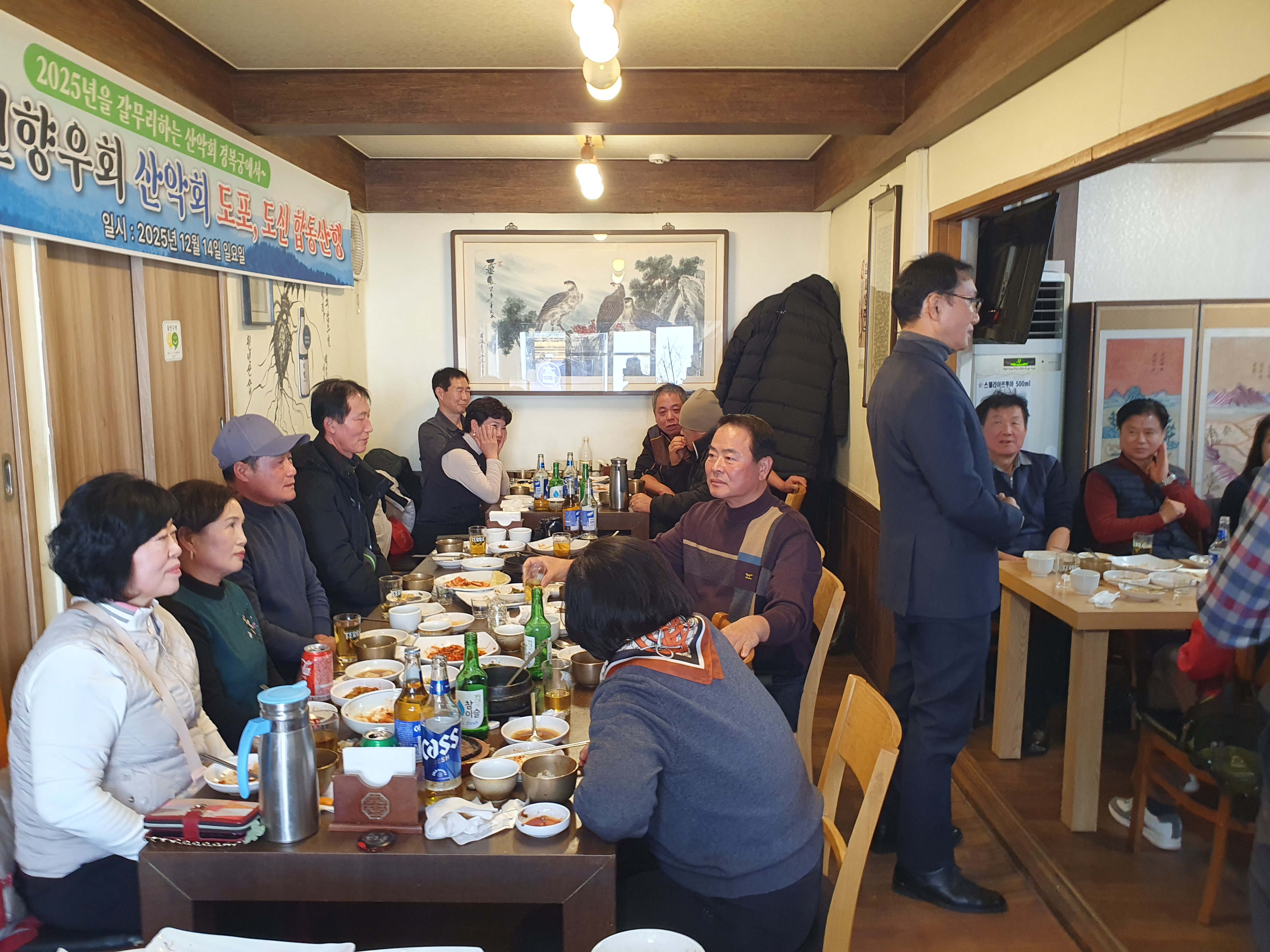 곽찬대 산악회장은 갈무리하는 송년 산행 소감에서 “도포산악회는 2013년도에 처음 발걸음을 하여 임시 산행을 진행해오다가 2026년에 정식 발족해 초대회장으로 곽찬대, 2대 주만석(3년) 회장에 이어 다시 3대 곽찬대 회장으로 이어왔다” 고 역사를 밝히면서 “저는 6년 간 산악회장을 맡아왔다” 며 “저는 올해부로 모든 임무를 내려놓게 돼있다. 지나온 시간을 되돌아보니 아쉬움도 있지만, 좋았던 일도 많았던 순간에 교차한다. 과거의 선택이나 결과에 대한 미련, 이루지 못한 꿈이나 놓친 기회가 있었던 것 같다. 하지만 좋았던 일을 그 과정에서 얻은 성장, 소중한 인연, 즐거웠던 경험 등 긍정적인 기억이 남는다” 고 되돌아보면서 “후회만 남는 것이 아니라, 그 경험을 통해 더 나은 자신을 만들어가는 계기가 됐다” 고 말했다.