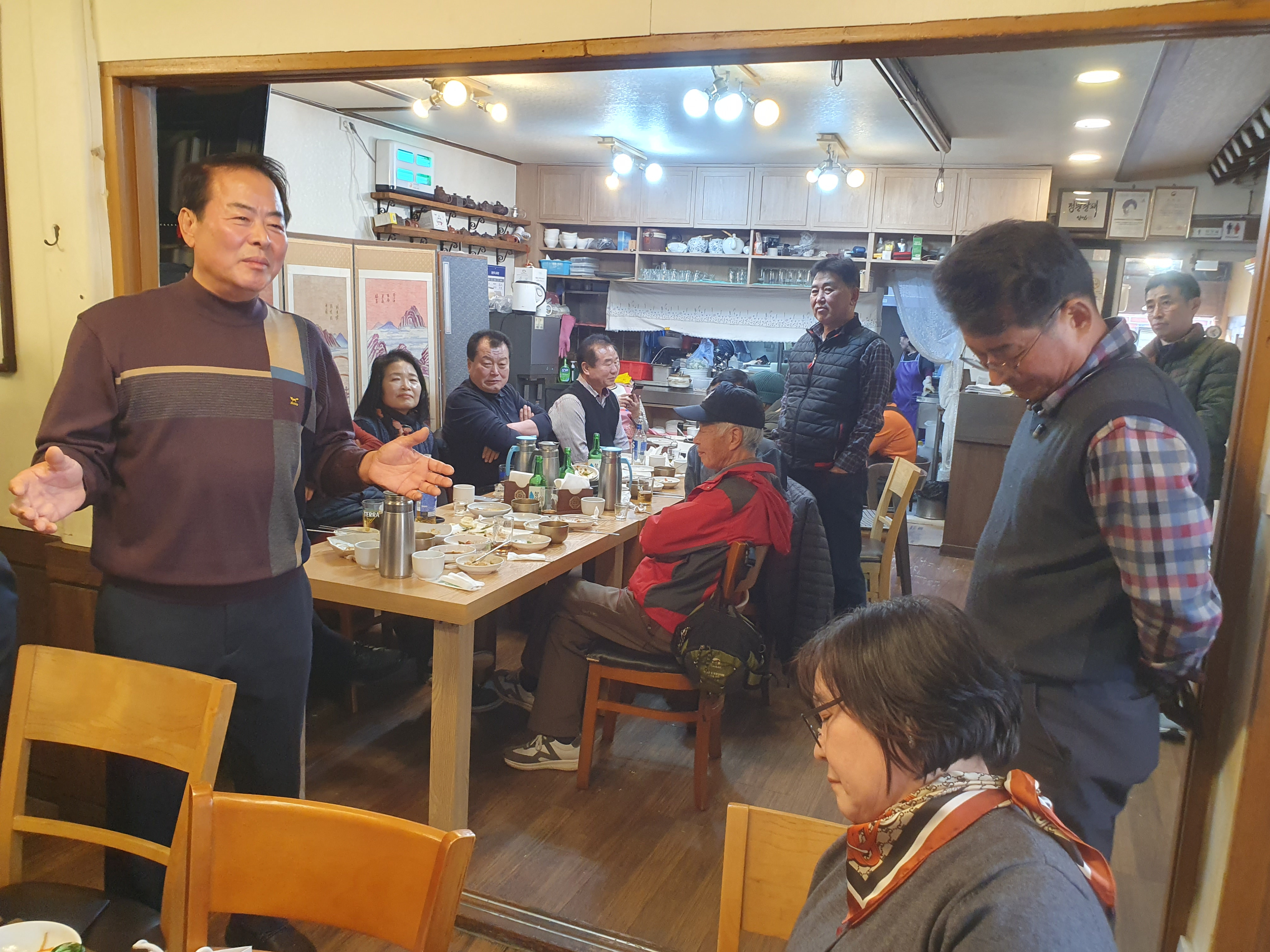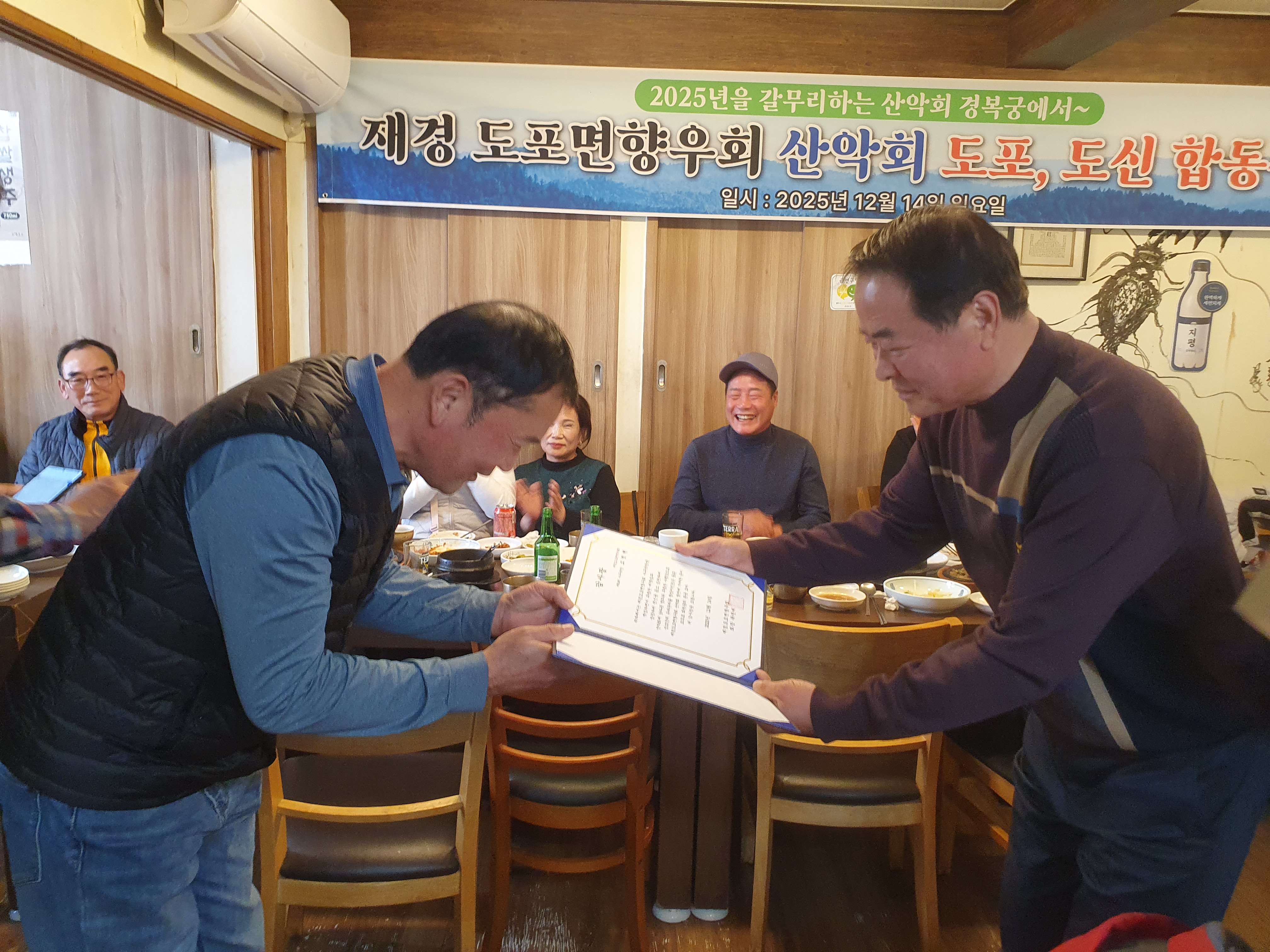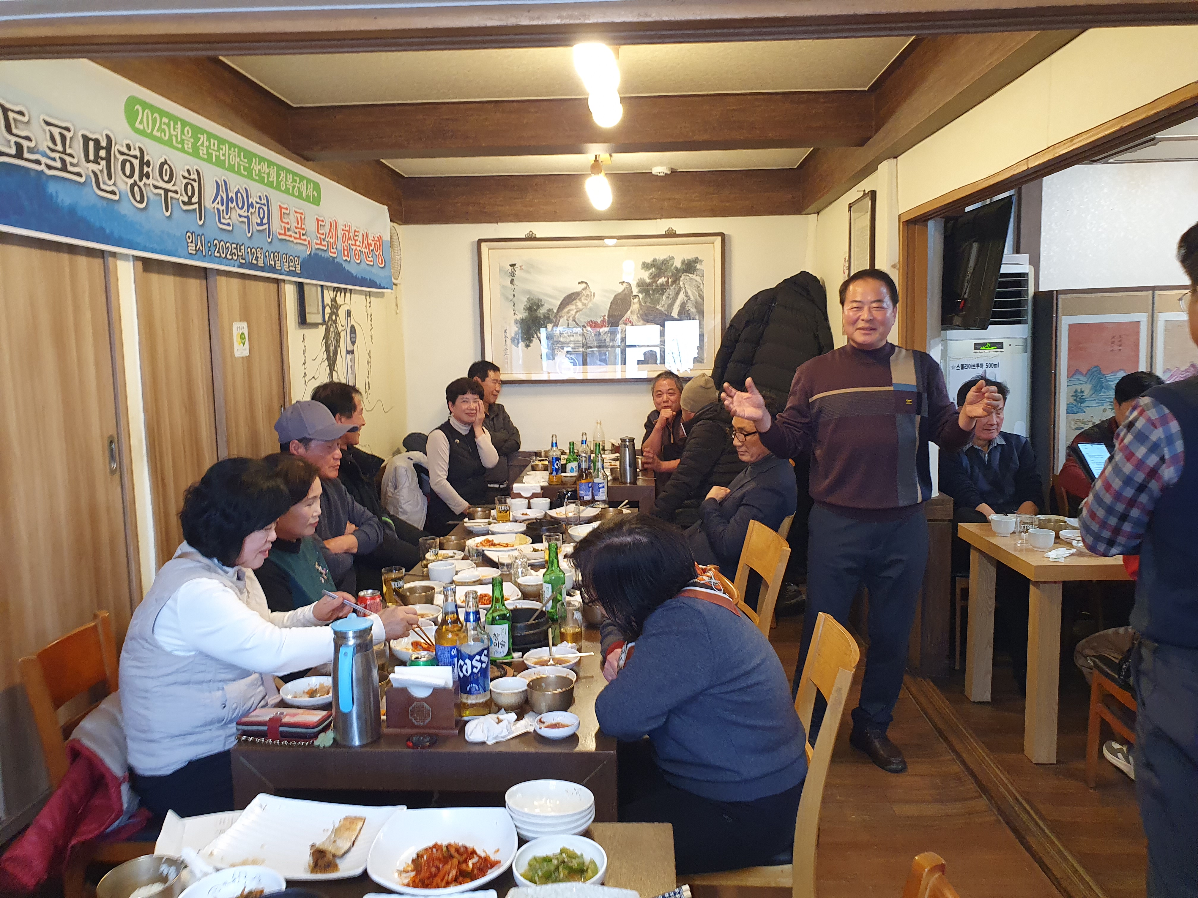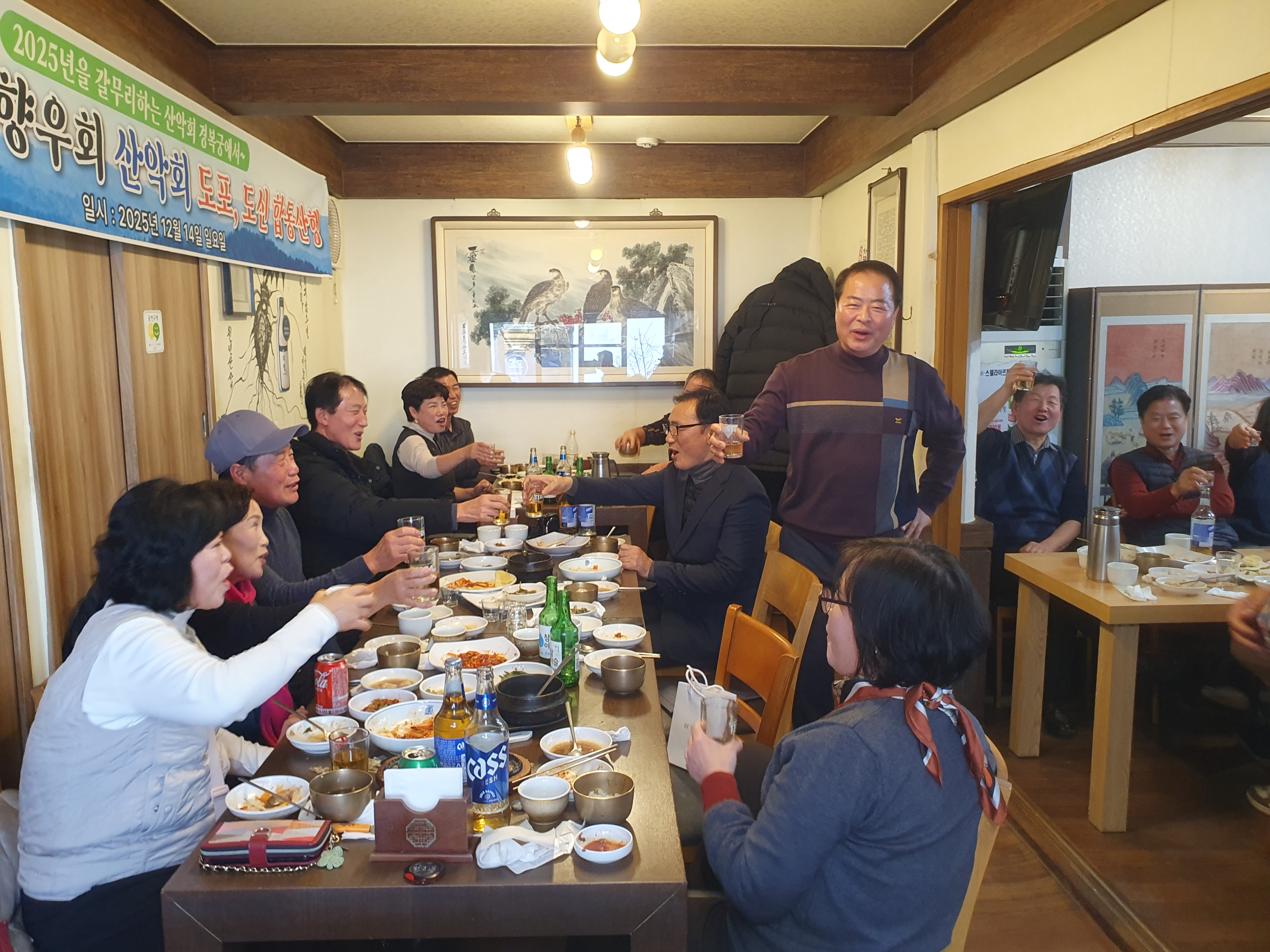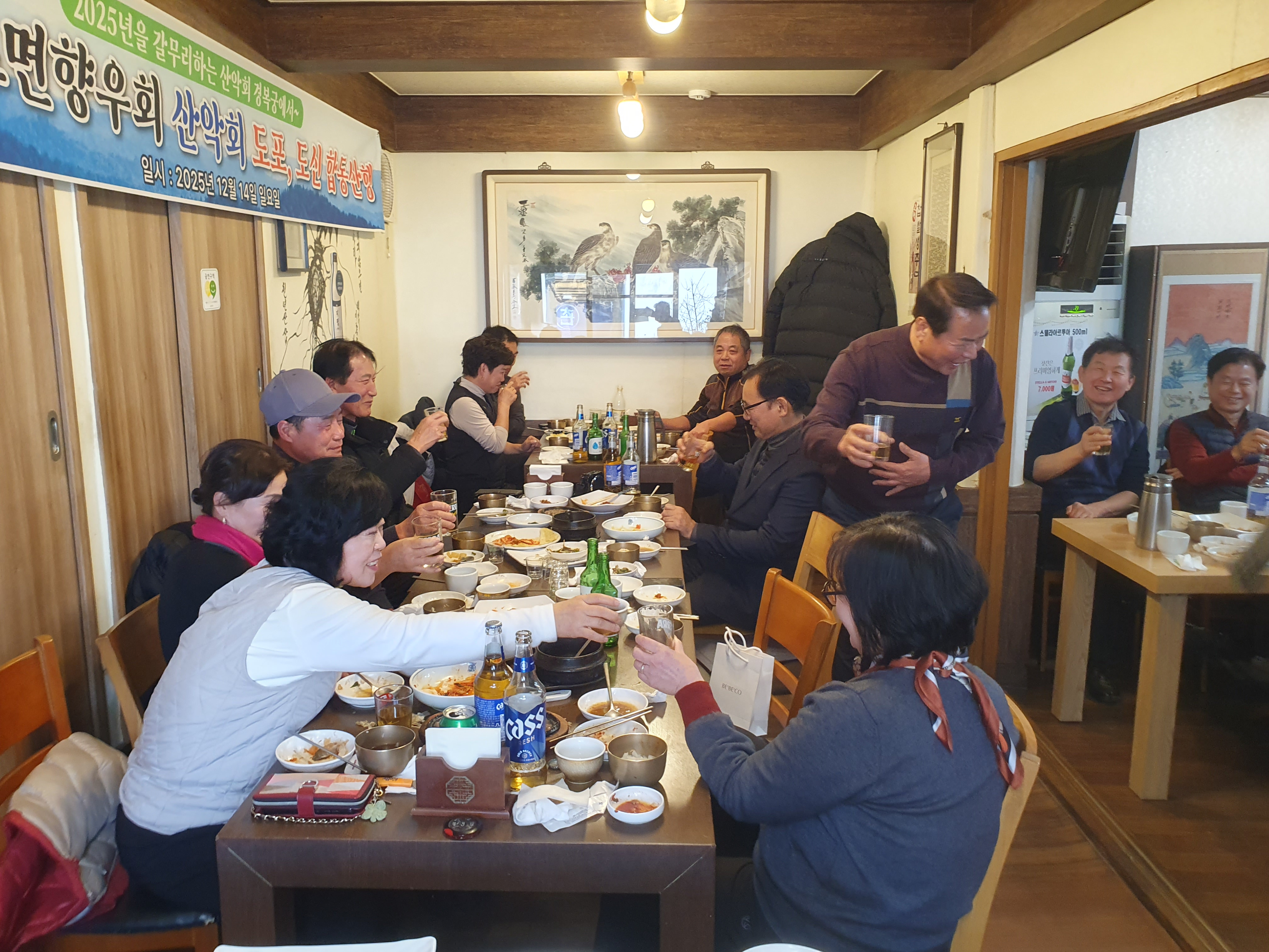 곽찬대 산악회장은 갈무리하는 송년 산행 소감에서 “도포산악회는 2013년도에 처음 발걸음을 하여 임시 산행을 진행해오다가 2026년에 정식 발족해 초대회장으로 곽찬대, 2대 주만석(3년) 회장에 이어 다시 3대 곽찬대 회장으로 이어왔다” 고 역사를 밝히면서 “저는 6년 간 산악회장을 맡아왔다” 며 “저는 올해부로 모든 임무를 내려놓게 돼있다. 지나온 시간을 되돌아보니 아쉬움도 있지만, 좋았던 일도 많았던 순간에 교차한다. 과거의 선택이나 결과에 대한 미련, 이루지 못한 꿈이나 놓친 기회가 있었던 것 같다. 하지만 좋았던 일을 그 과정에서 얻은 성장, 소중한 인연, 즐거웠던 경험 등 긍정적인 기억이 남는다” 고 되돌아보면서 “후회만 남는 것이 아니라, 그 경험을 통해 더 나은 자신을 만들어가는 계기가 됐다” 고 말했다.