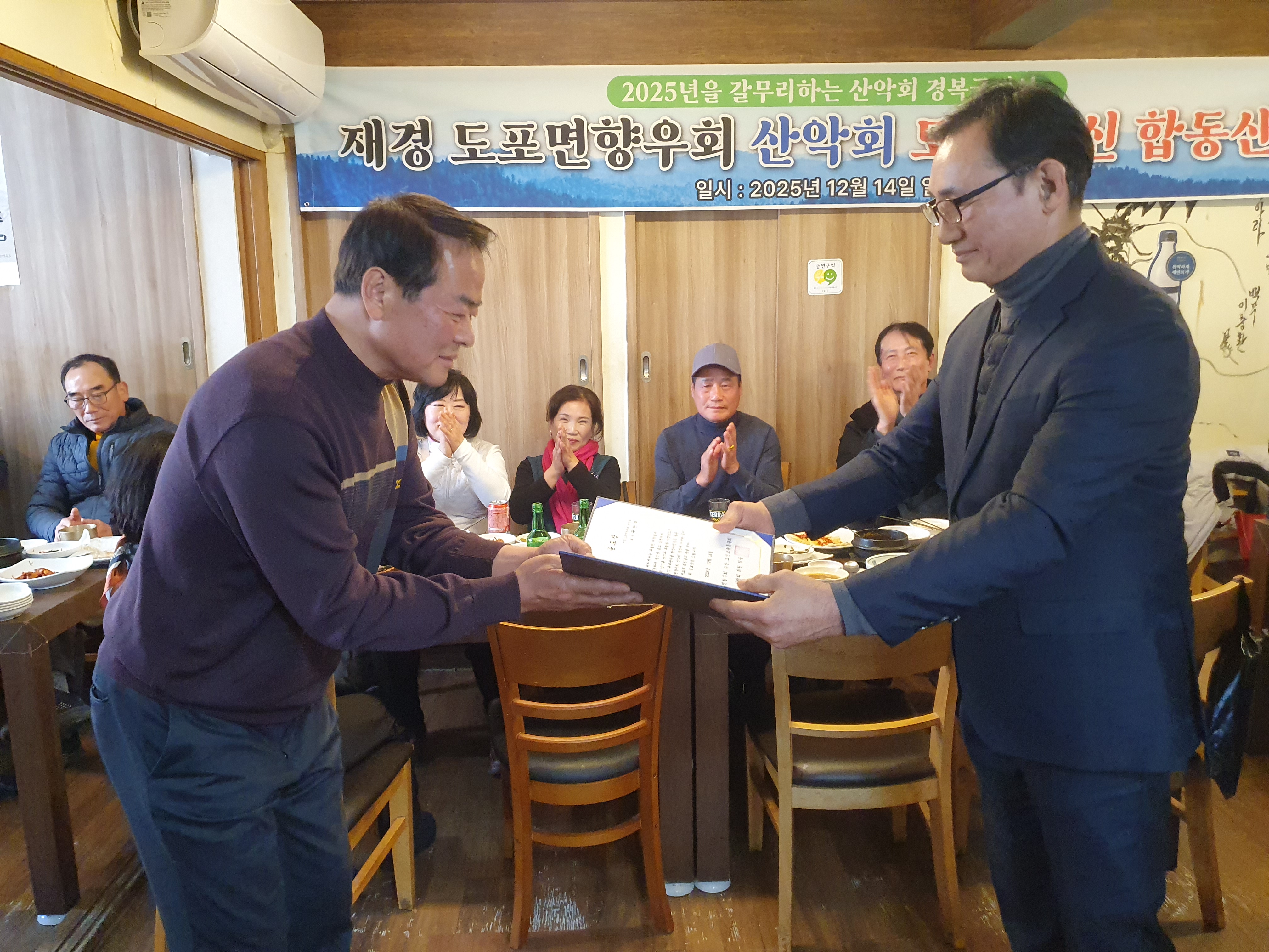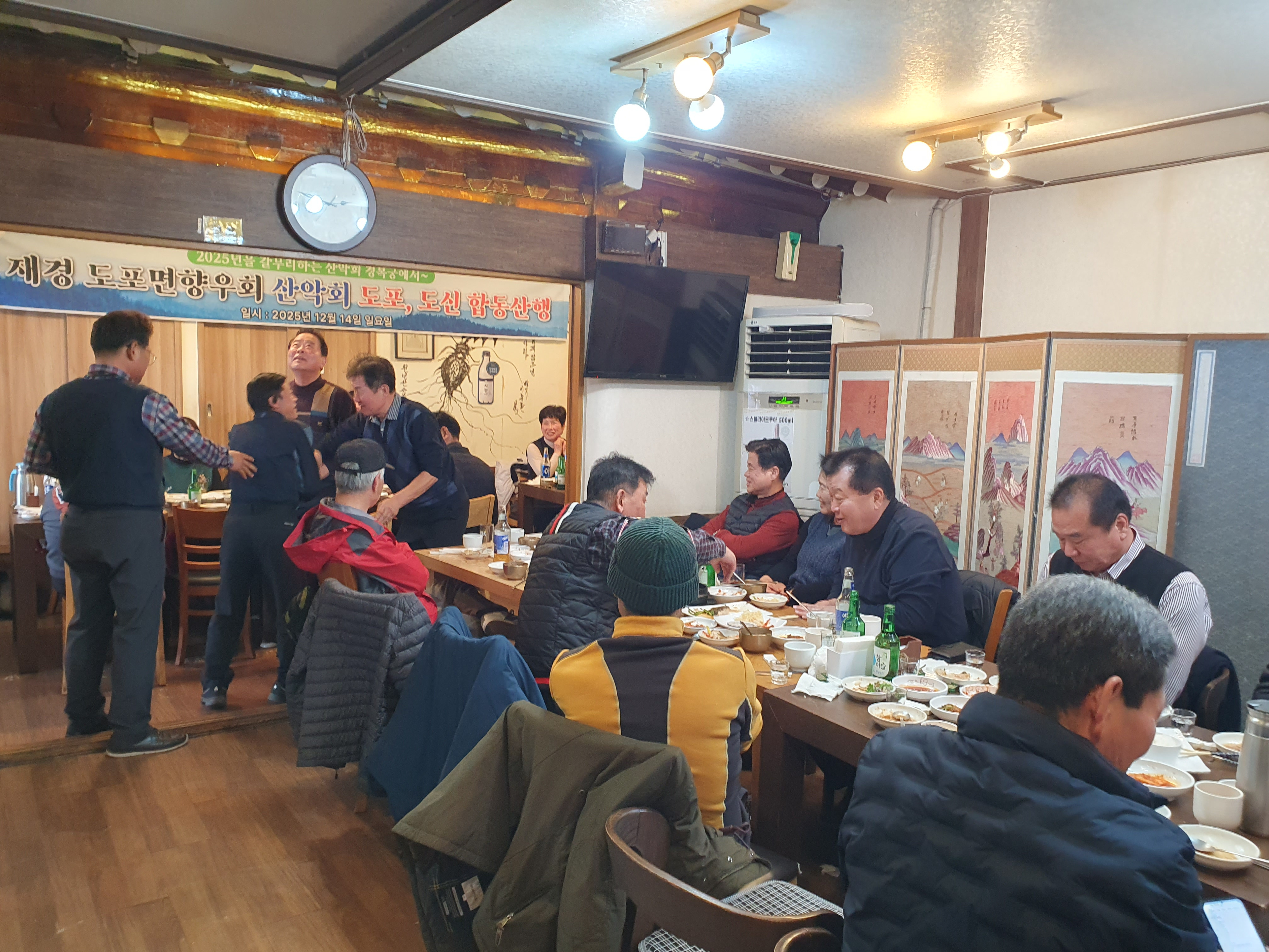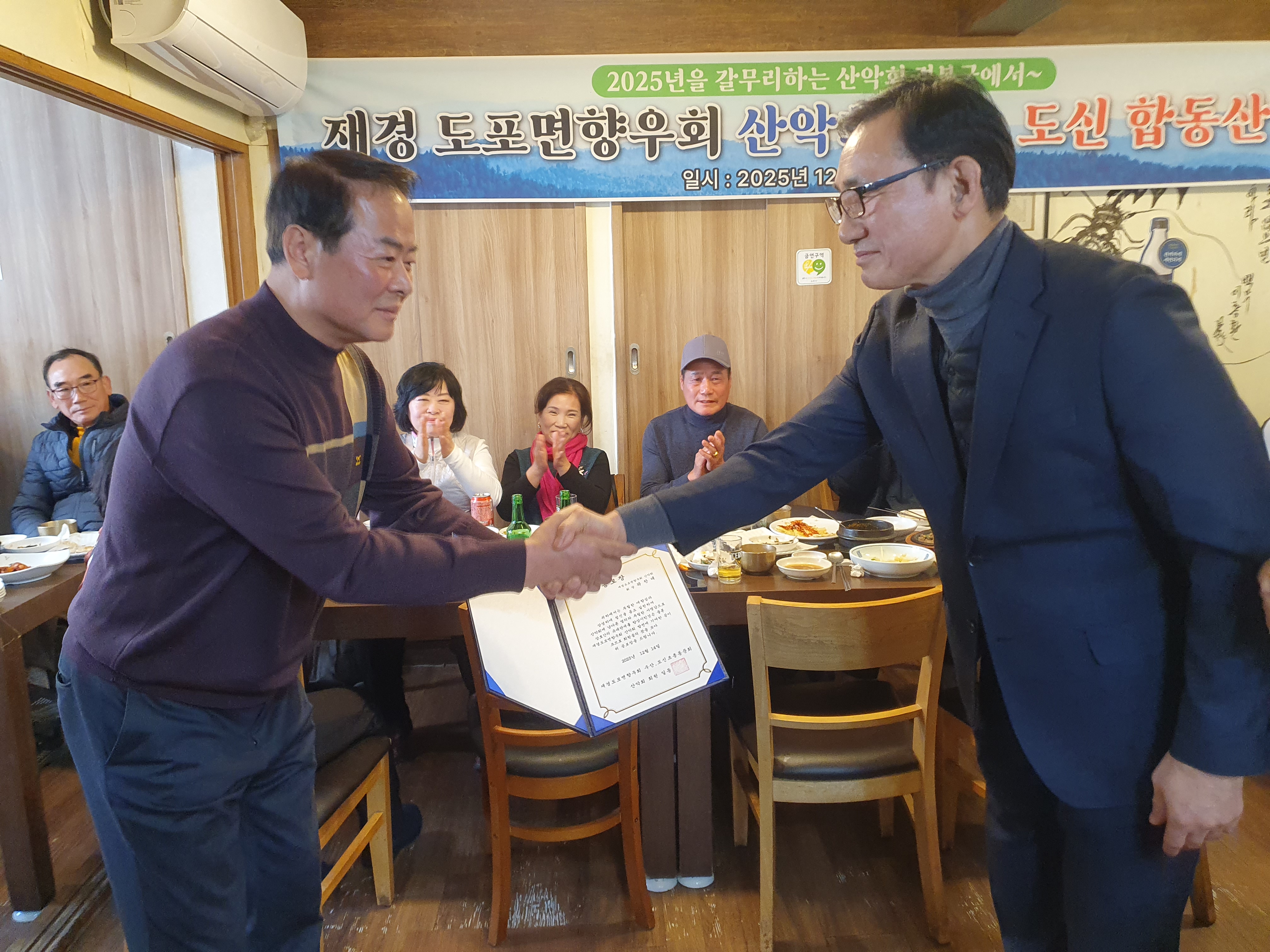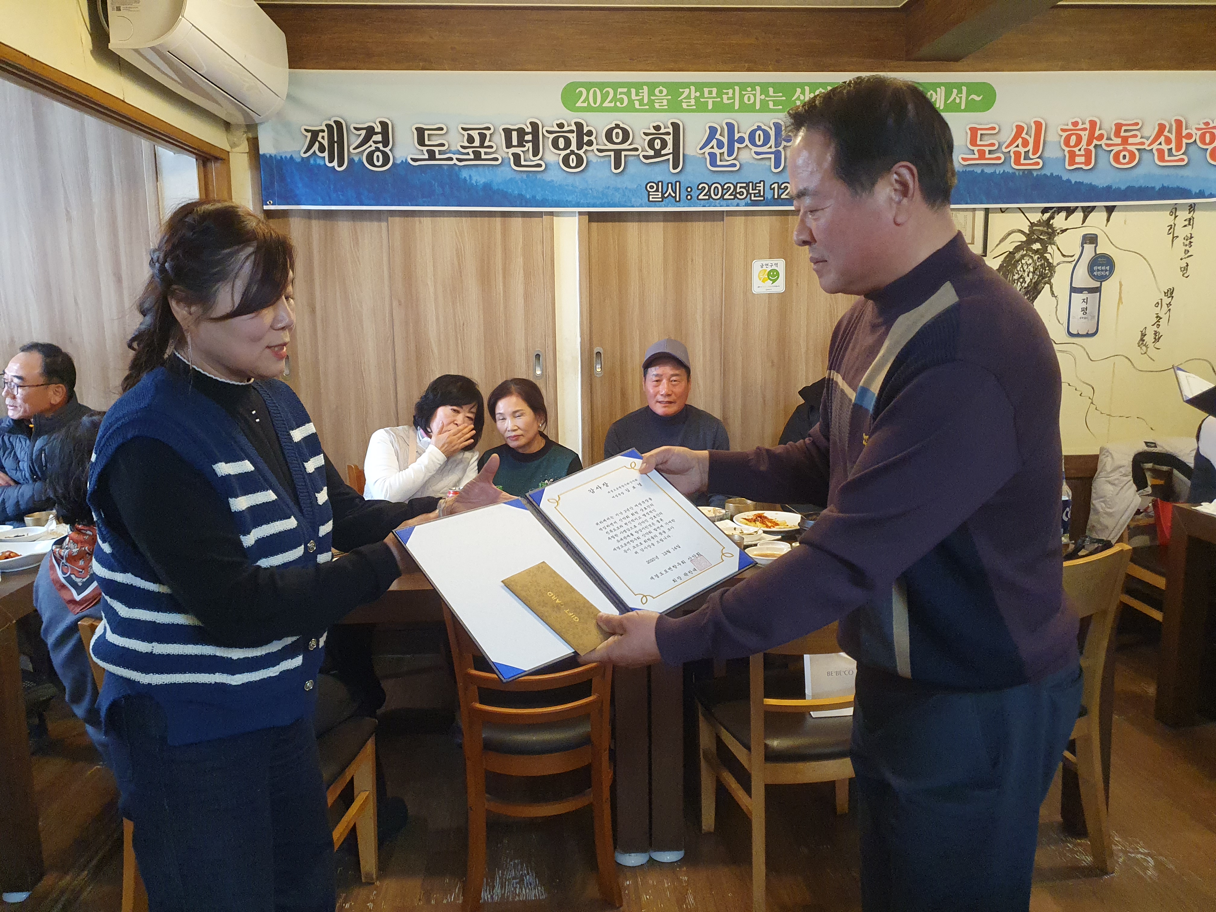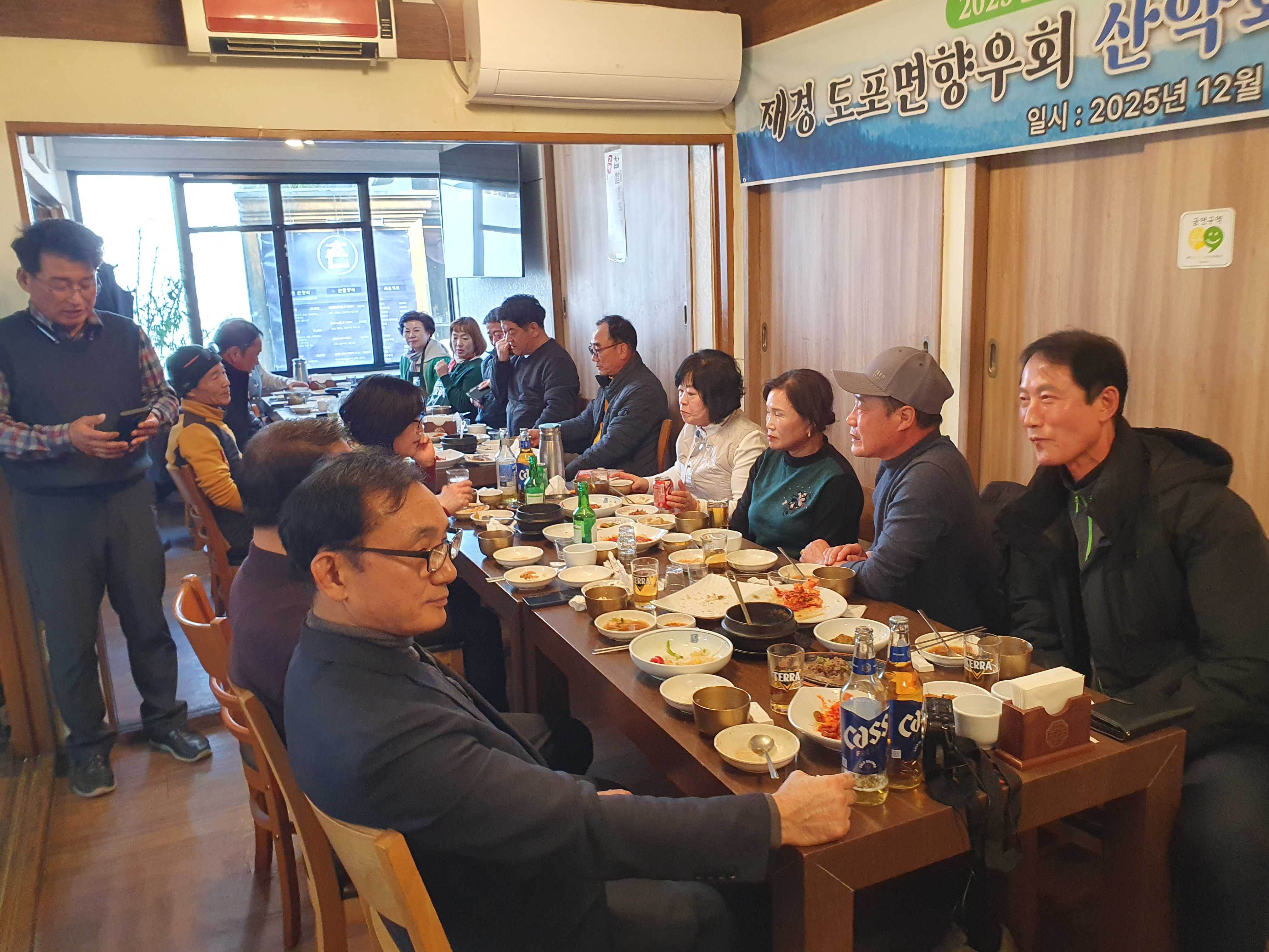 곽찬대 산악회장은 갈무리하는 송년 산행 소감에서 “도포산악회는 2013년도에 처음 발걸음을 하여 임시 산행을 진행해오다가 2026년에 정식 발족해 초대회장으로 곽찬대, 2대 주만석(3년) 회장에 이어 다시 3대 곽찬대 회장으로 이어왔다” 고 역사를 밝히면서 “저는 6년 간 산악회장을 맡아왔다” 며 “저는 올해부로 모든 임무를 내려놓게 돼있다. 지나온 시간을 되돌아보니 아쉬움도 있지만, 좋았던 일도 많았던 순간에 교차한다. 과거의 선택이나 결과에 대한 미련, 이루지 못한 꿈이나 놓친 기회가 있었던 것 같다. 하지만 좋았던 일을 그 과정에서 얻은 성장, 소중한 인연, 즐거웠던 경험 등 긍정적인 기억이 남는다” 고 되돌아보면서 “후회만 남는 것이 아니라, 그 경험을 통해 더 나은 자신을 만들어가는 계기가 됐다” 고 말했다.
